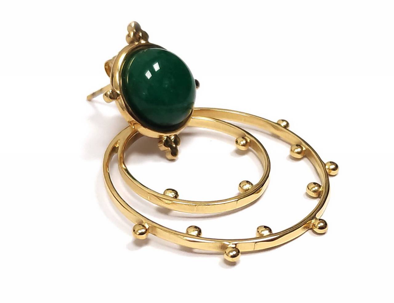 Σκουλαρίκια Πέτρα 316L, κρίκος με μαλαχίτη σε χρώμα Χρυσαφί