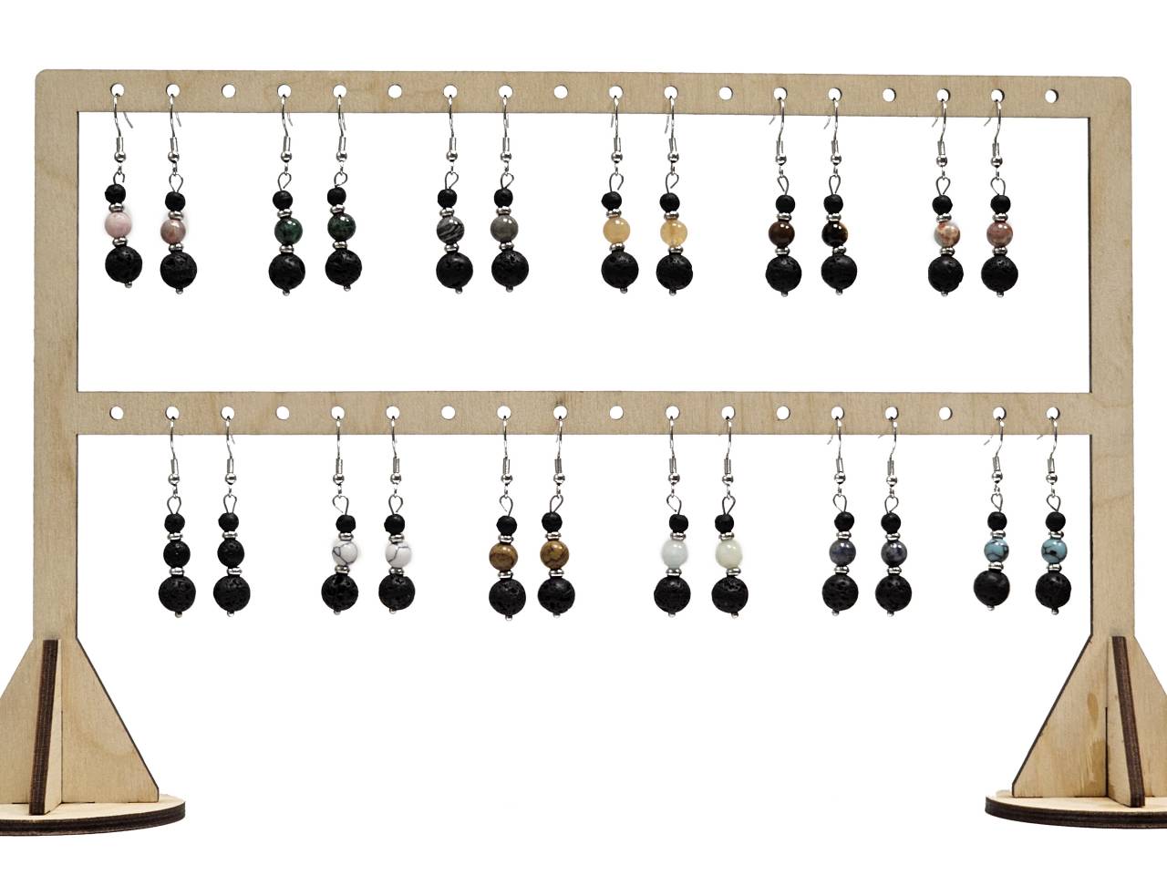 Σκουλαρίκια Πέτρα ημιπολύτιμη και λάβα, ατσάλι, 12 χρώματα από 2 ζευγ. σε χρώμα Ασημί Σταντ(24Ζεγ.)