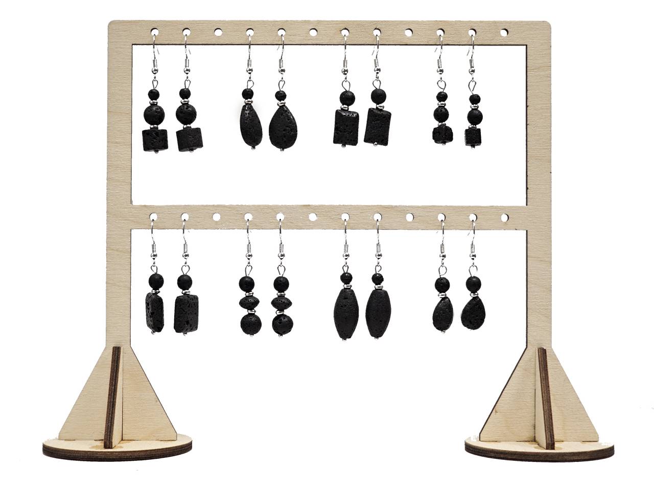 Σκουλαρίκια Πέτρα λάβα, ατσάλι, 8 σχέδια από 3 ζευγ. σε χρώμα Ασημί Σταντ(24Ζεγ.)