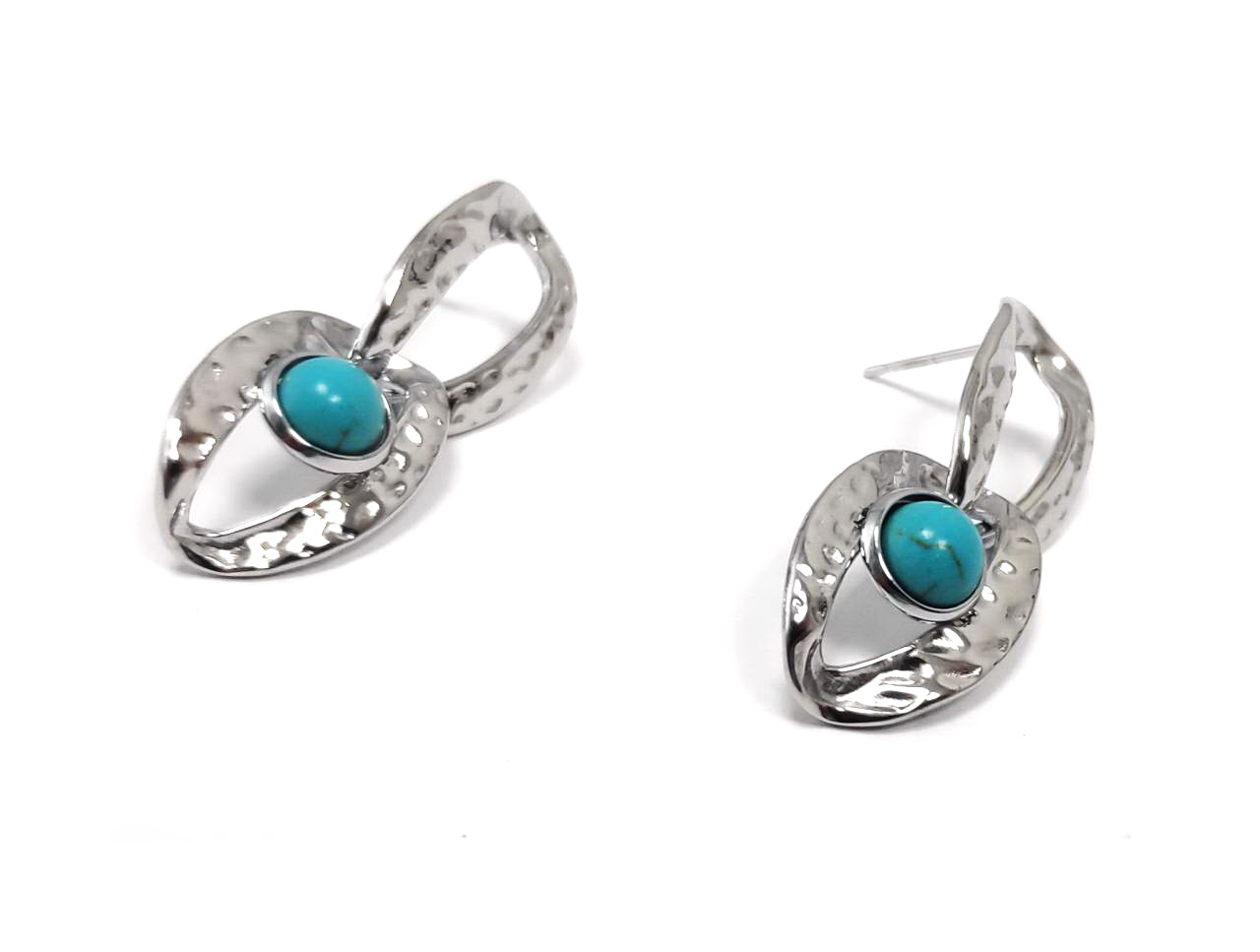 Σκουλαρίκια Πέτρα 316L, αλυσίδα και τυρκουάζ σε χρώμα Ασημί