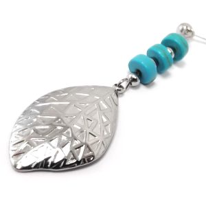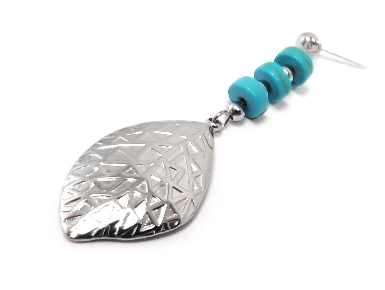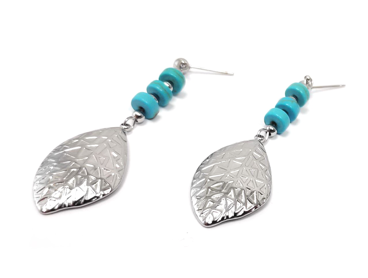 Σκουλαρίκια Πέτρα 316L, φύλλο και τυρκουάζ σε χρώμα Ασημί