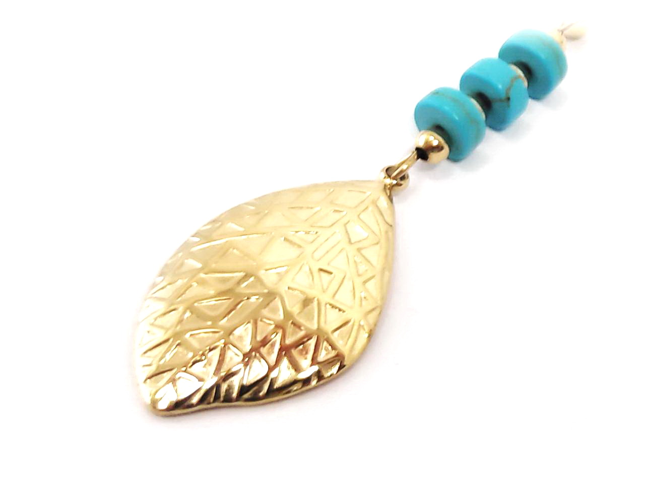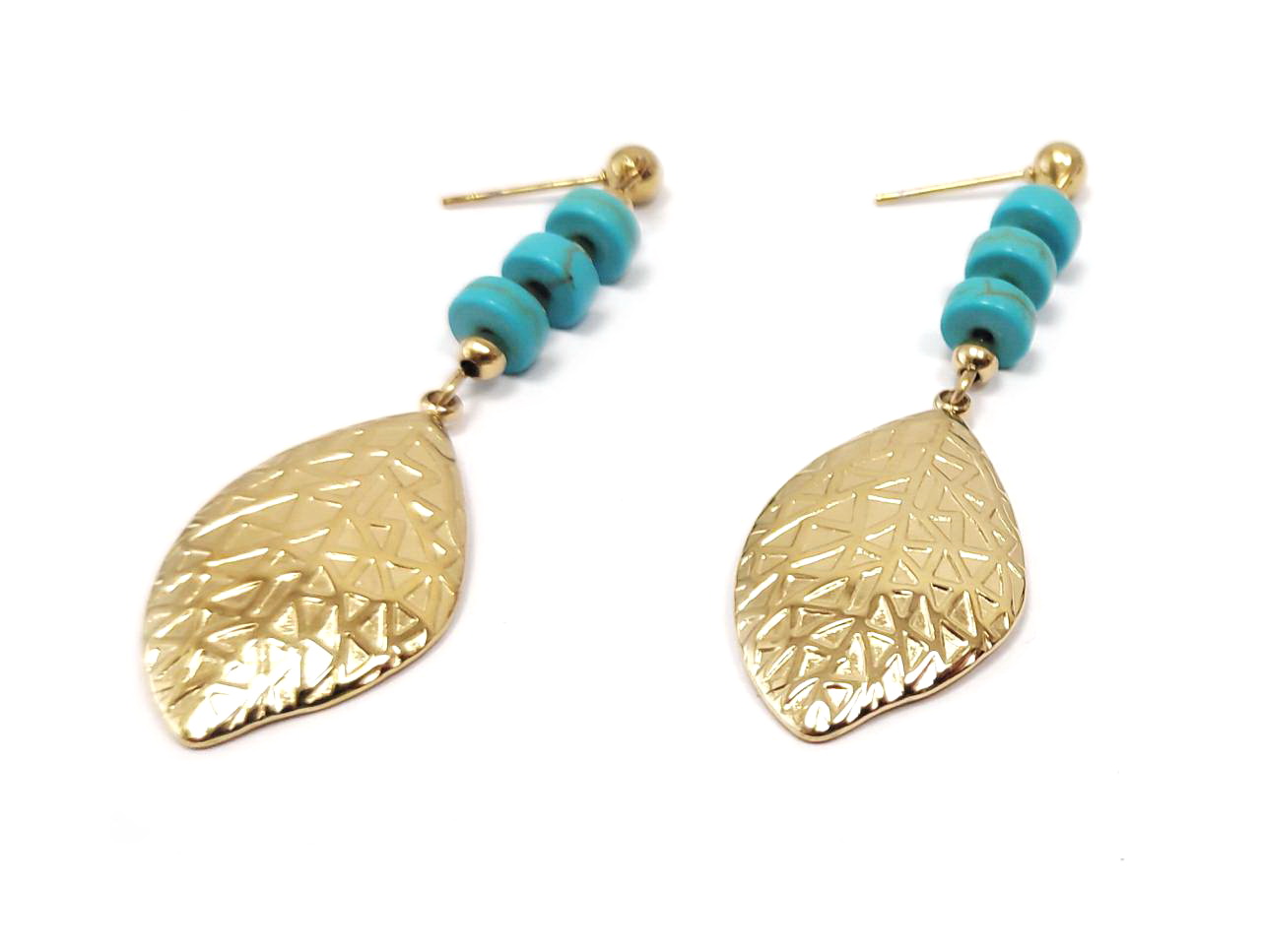 Σκουλαρίκια Πέτρα 316L, φύλλο και τυρκουάζ σε χρώμα Χρυσαφί