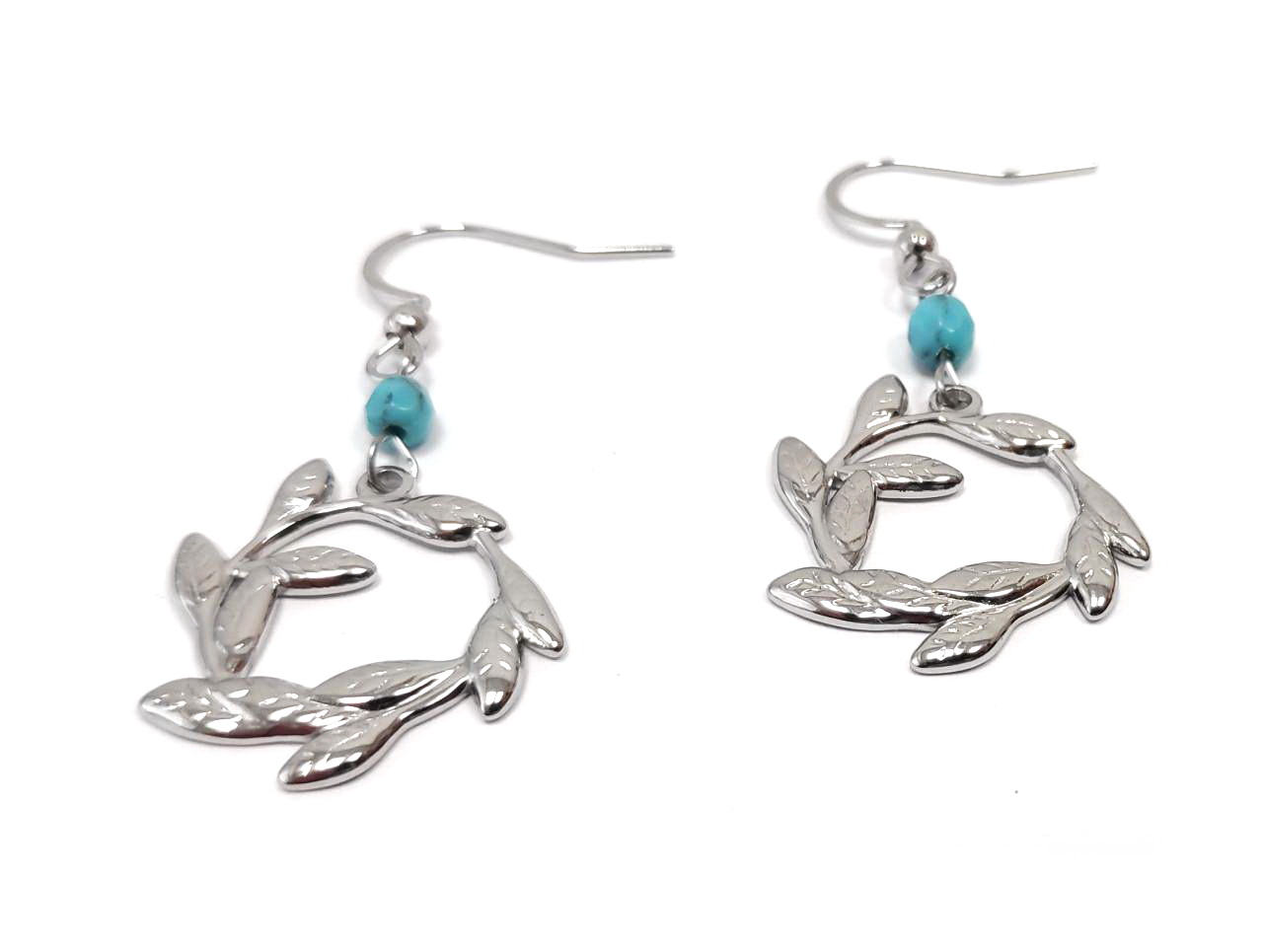 Σκουλαρίκια Πέτρα 316L, κρίκος και τυρκουάζ σε χρώμα Ασημί