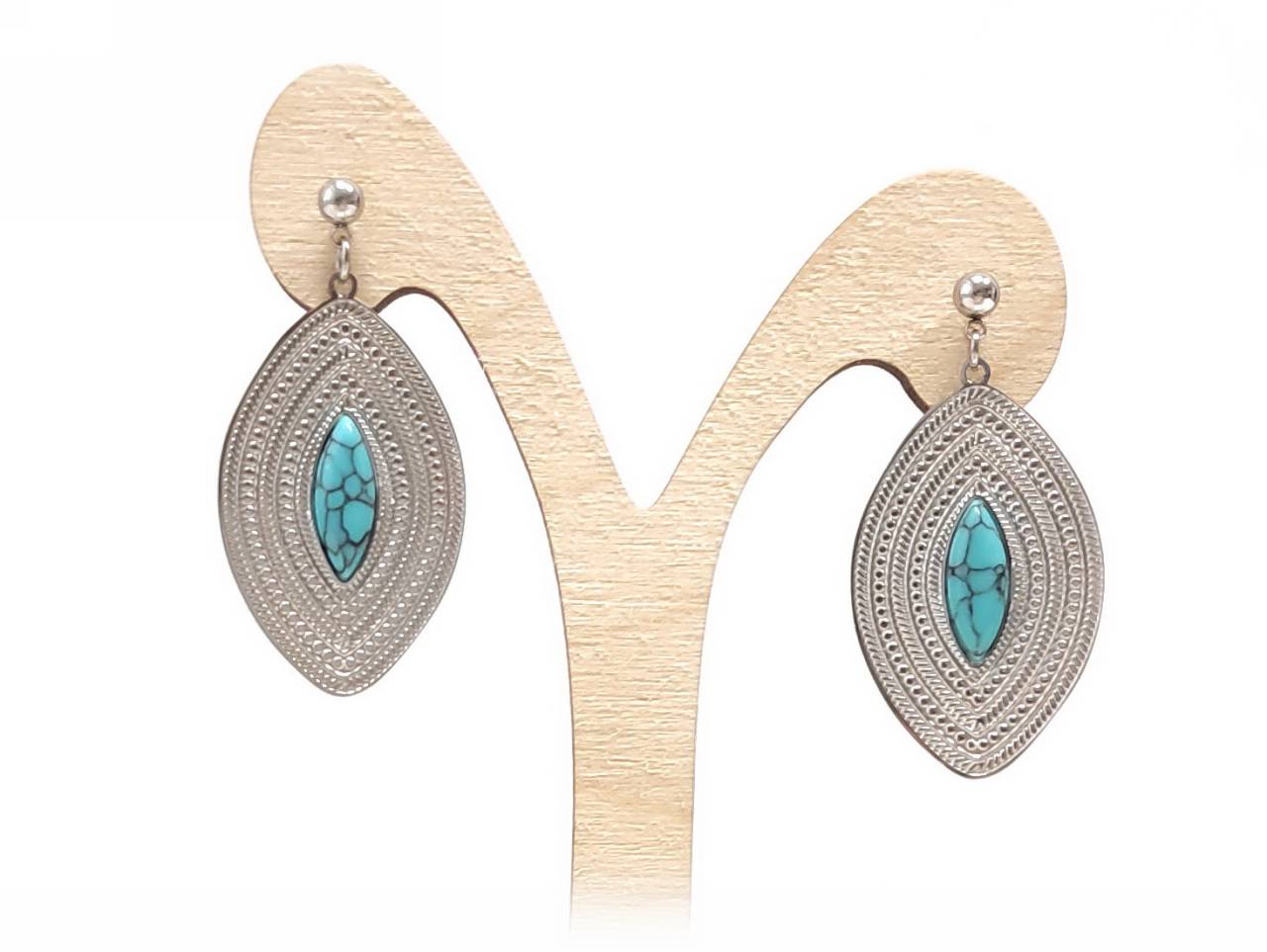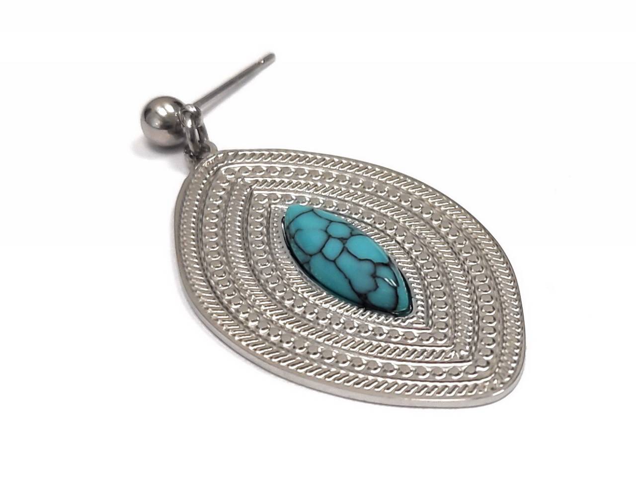 Σκουλαρίκια Πέτρα 316L, με τυρκουάζ σε χρώμα Ασημί