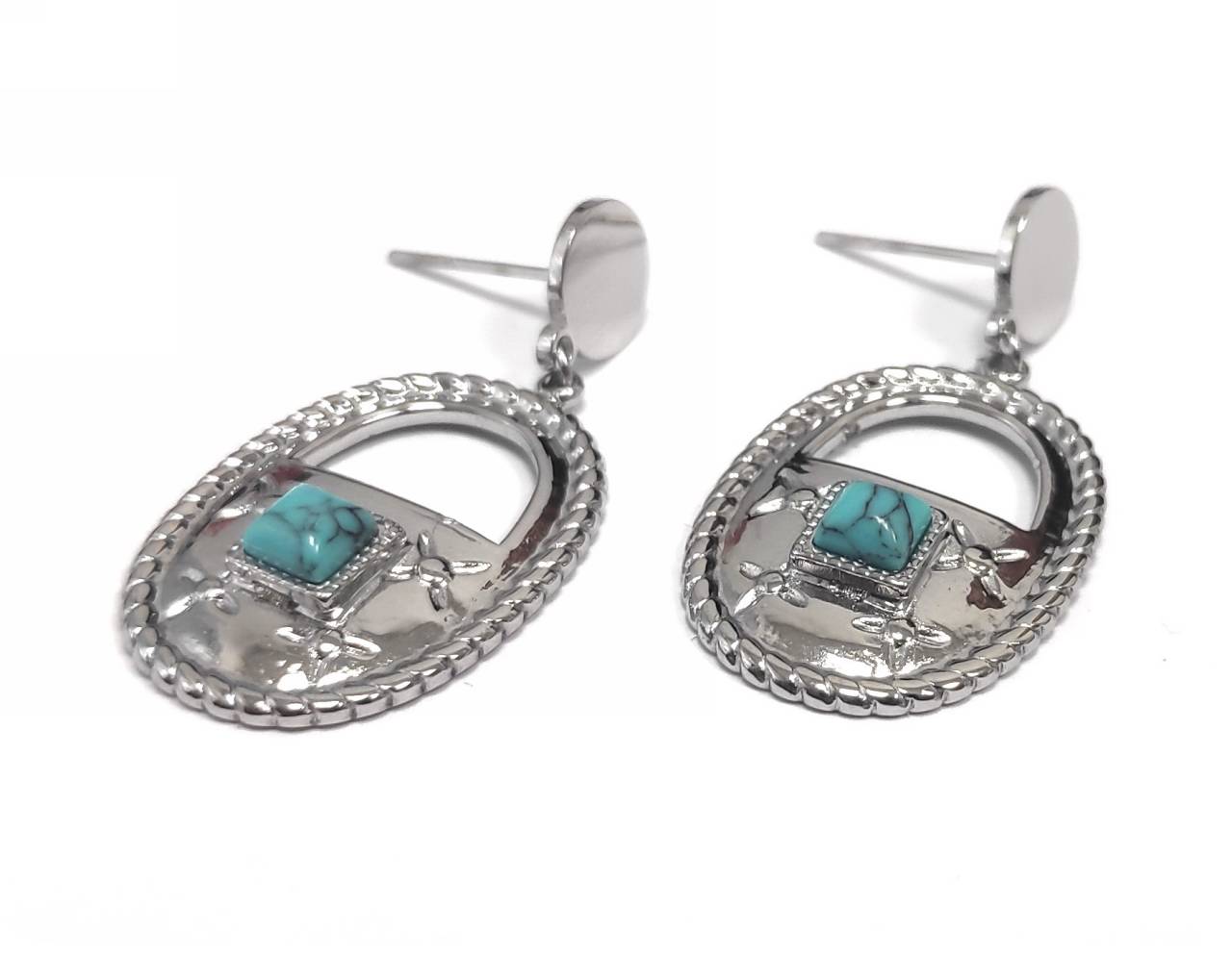 Σκουλαρίκια Πέτρα 316L, με τυρκουάζ σε χρώμα Ασημί