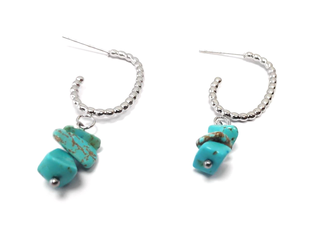 Σκουλαρίκια Πέτρα 316L, με τυρκουάζ σε χρώμα Ασημί