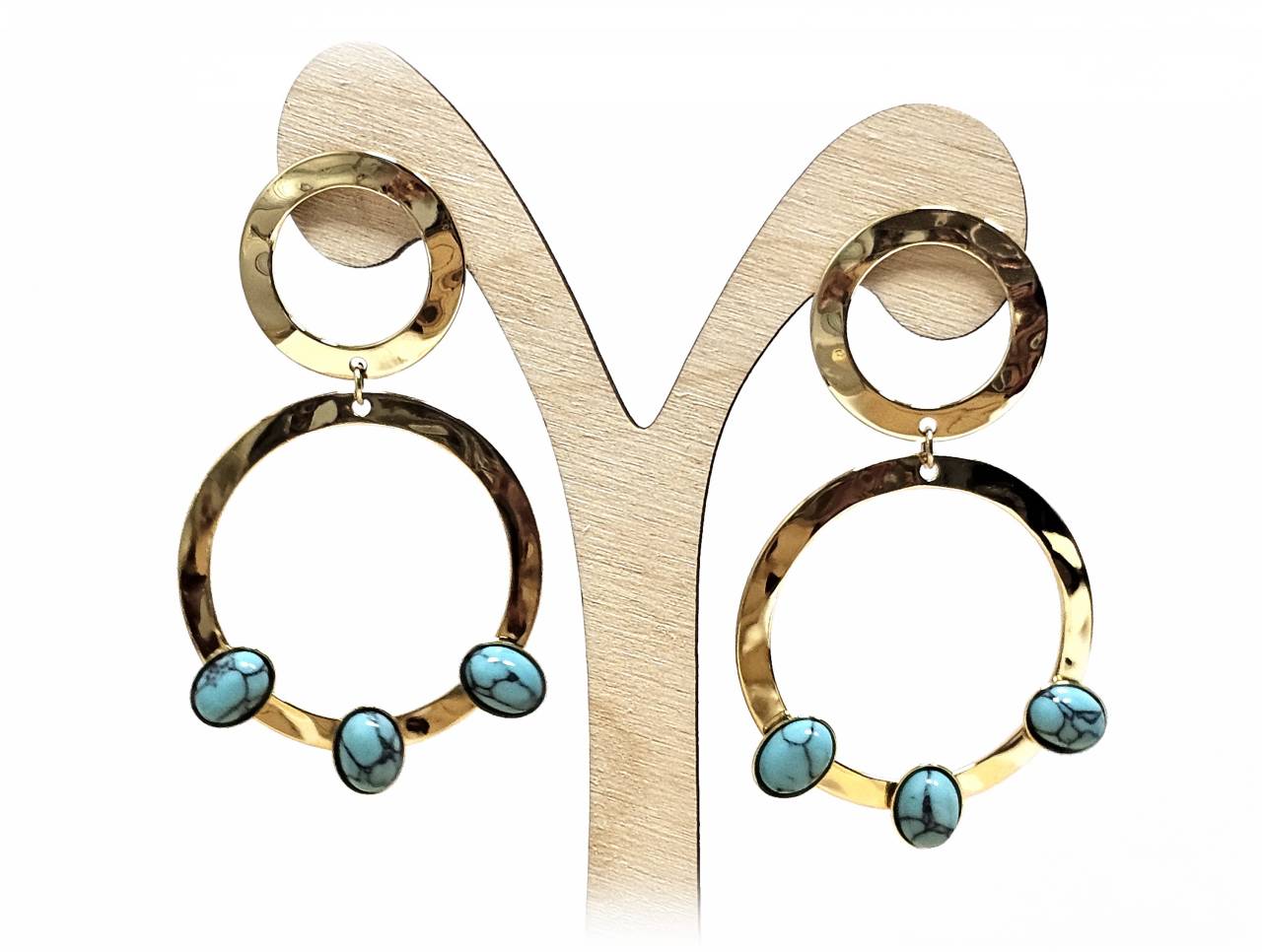 Σκουλαρίκια Πέτρα 316L, με τυρκουάζ σε χρώμα Χρυσαφί