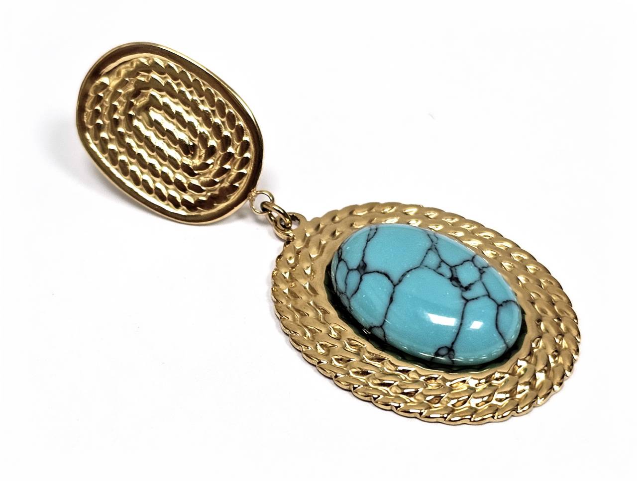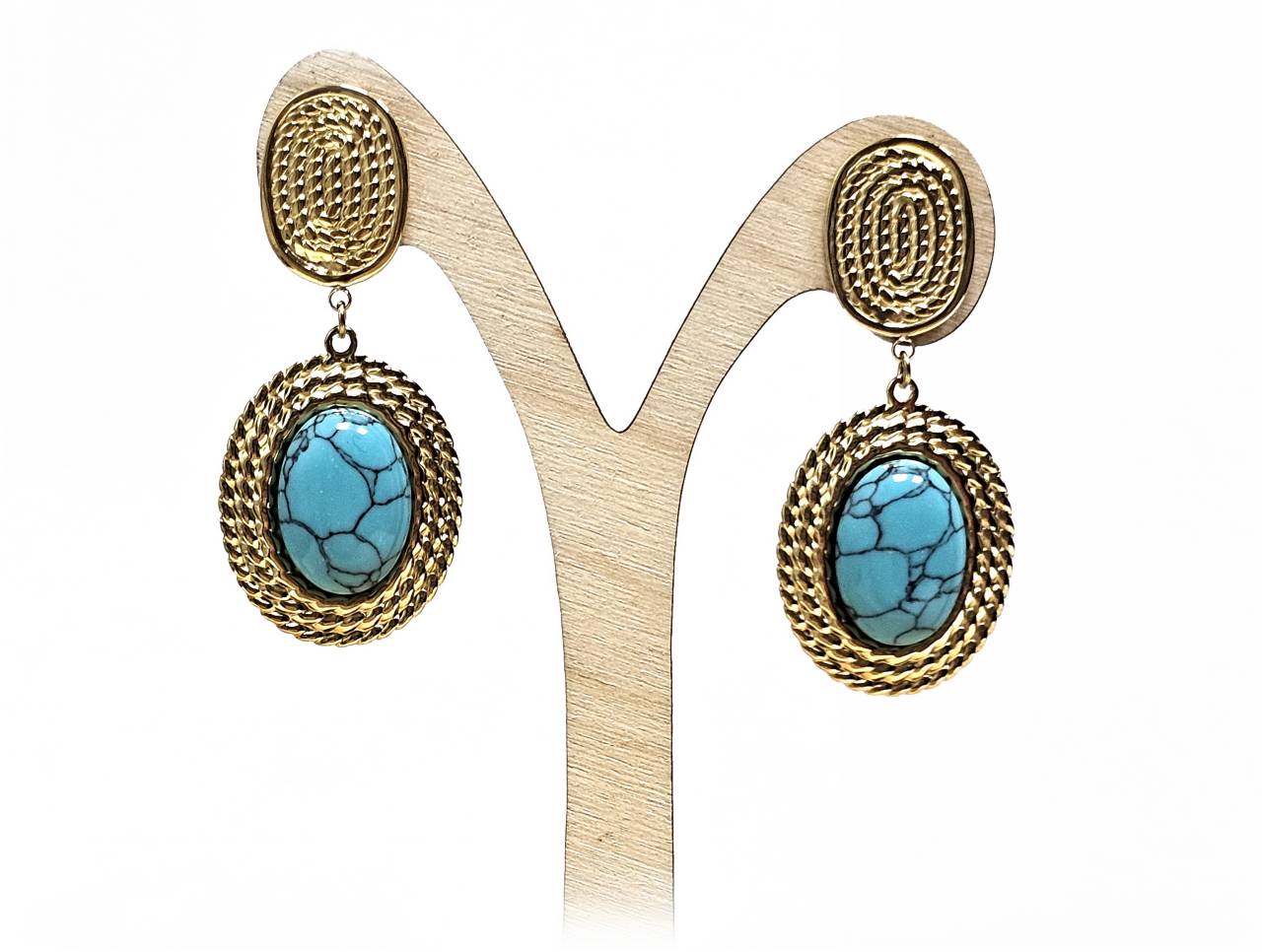 Σκουλαρίκια Πέτρα 316L, με τυρκουάζ σε χρώμα Χρυσαφί