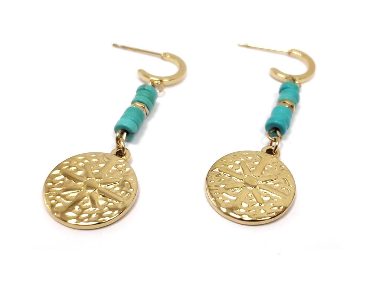 Σκουλαρίκια Πέτρα 316L, με τυρκουάζ σε χρώμα Χρυσαφί