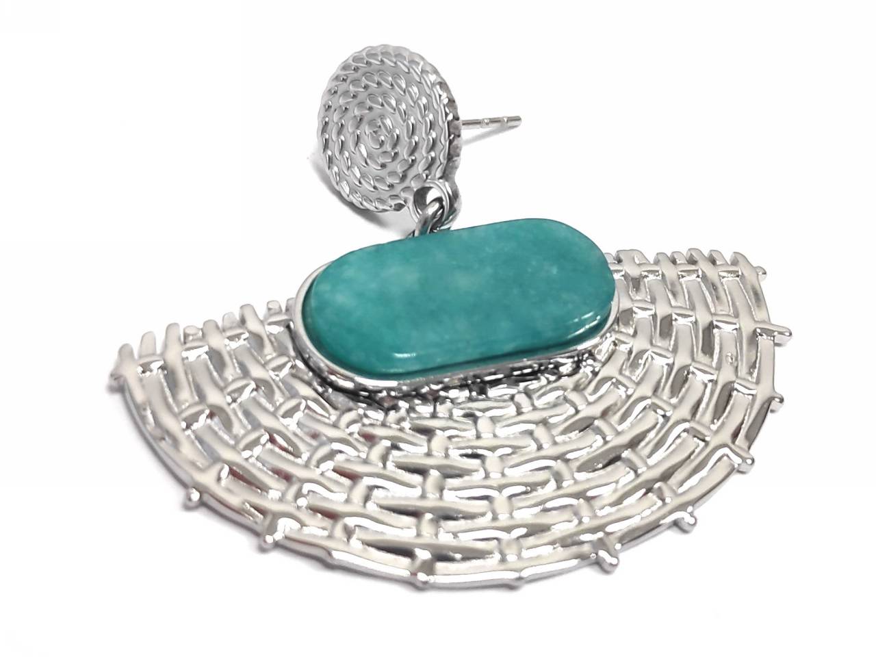 Σκουλαρίκια Πέτρα 316L, τυρκουάζ σε χρώμα Ασημί