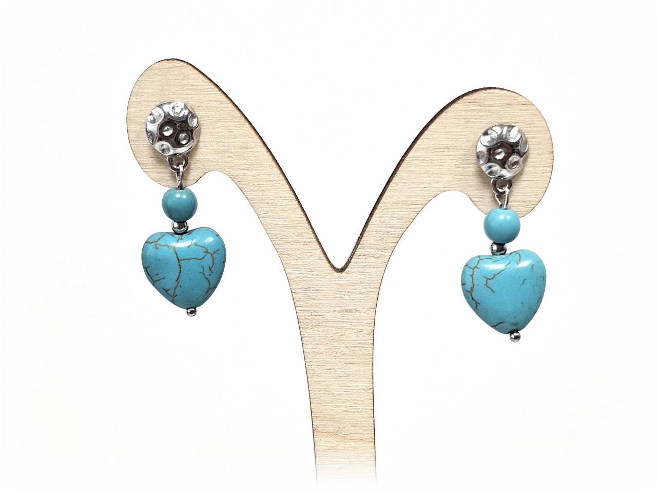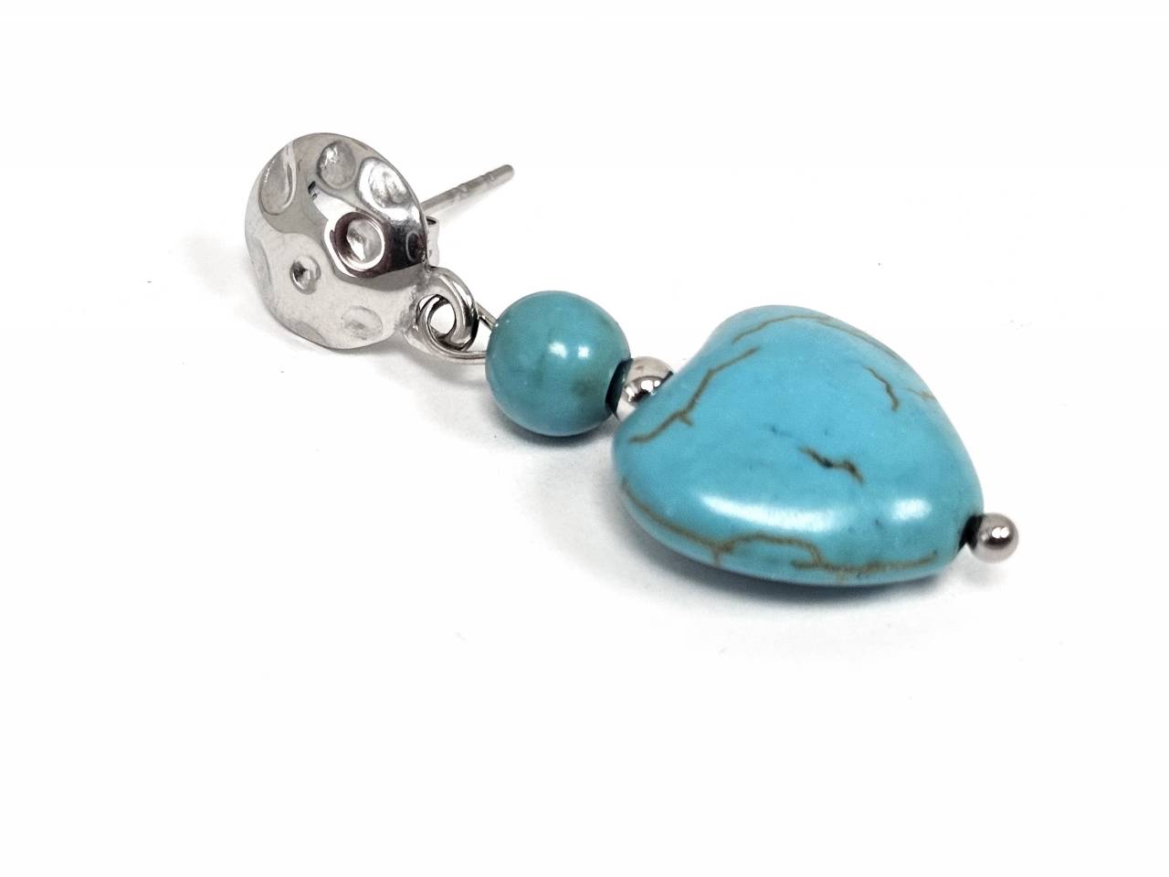 Σκουλαρίκια Πέτρα Ατσάλι 316L, καρδιά με τυρκουάζ σε χρώμα Ασημί
