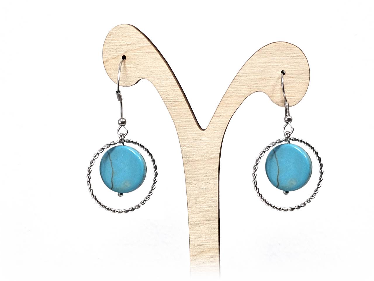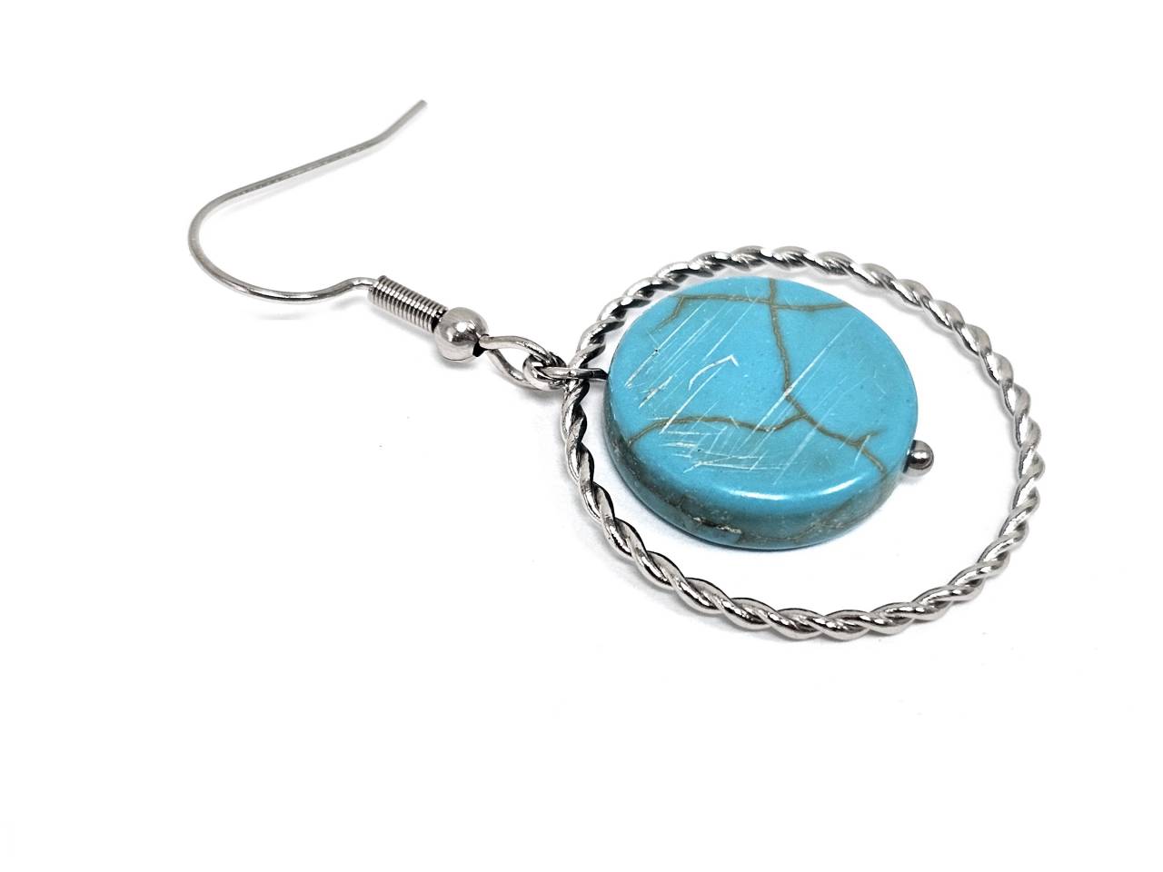 Σκουλαρίκια Πέτρα Ατσάλι 316L, με τυρκουάζ σε χρώμα Ασημί