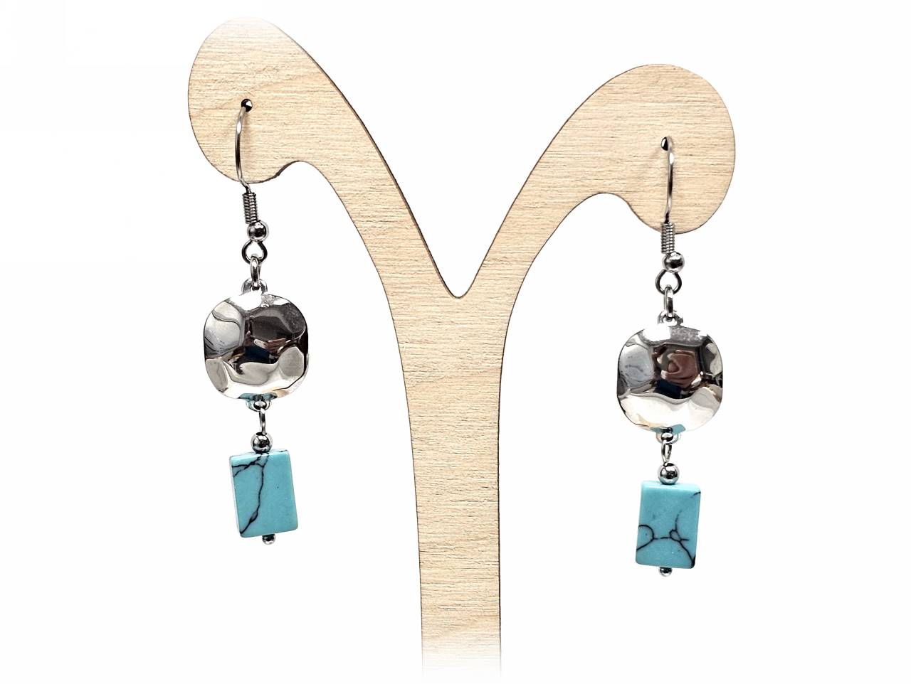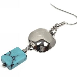 Σκουλαρίκια Πέτρα ατσάλι 316L, με τυρκουάζ σε χρώμα Ασημί