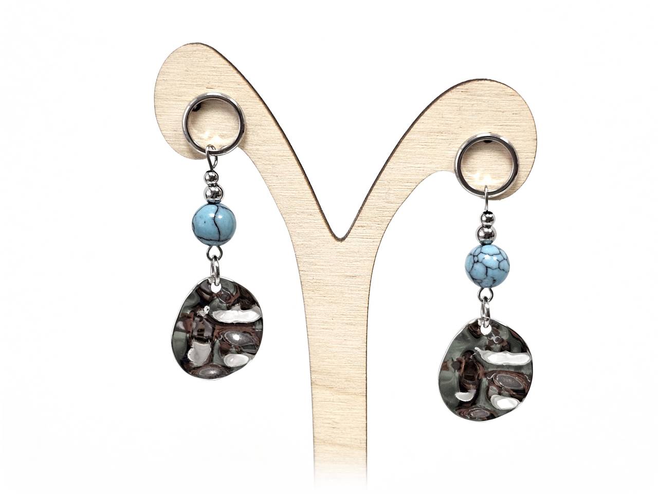 Σκουλαρίκια Πέτρα Ατσάλι 316L, με τυρκουάζ σε χρώμα Ασημί