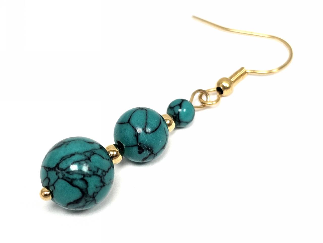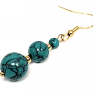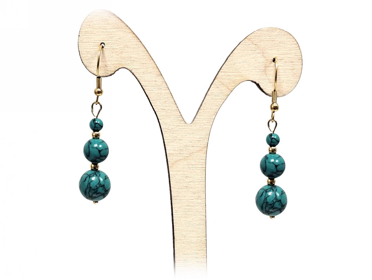 Σκουλαρίκια Πέτρα ατσάλι 316L, με τυρκουάζ σε χρώμα Χρυσαφί