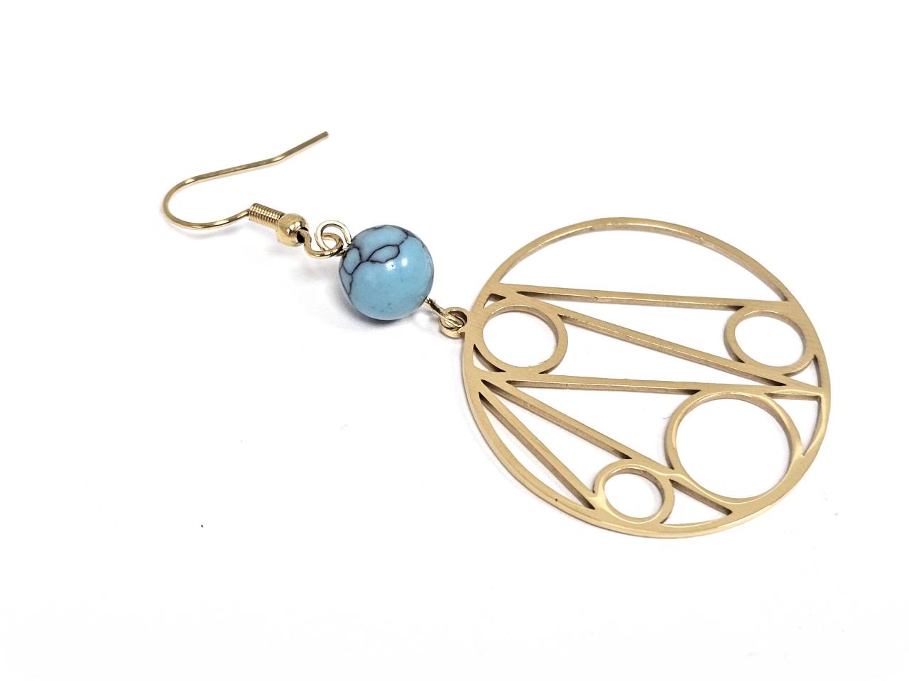 Σκουλαρίκια Πέτρα Ατσάλι 316L, με τυρκουάζ σε χρώμα Χρυσαφί