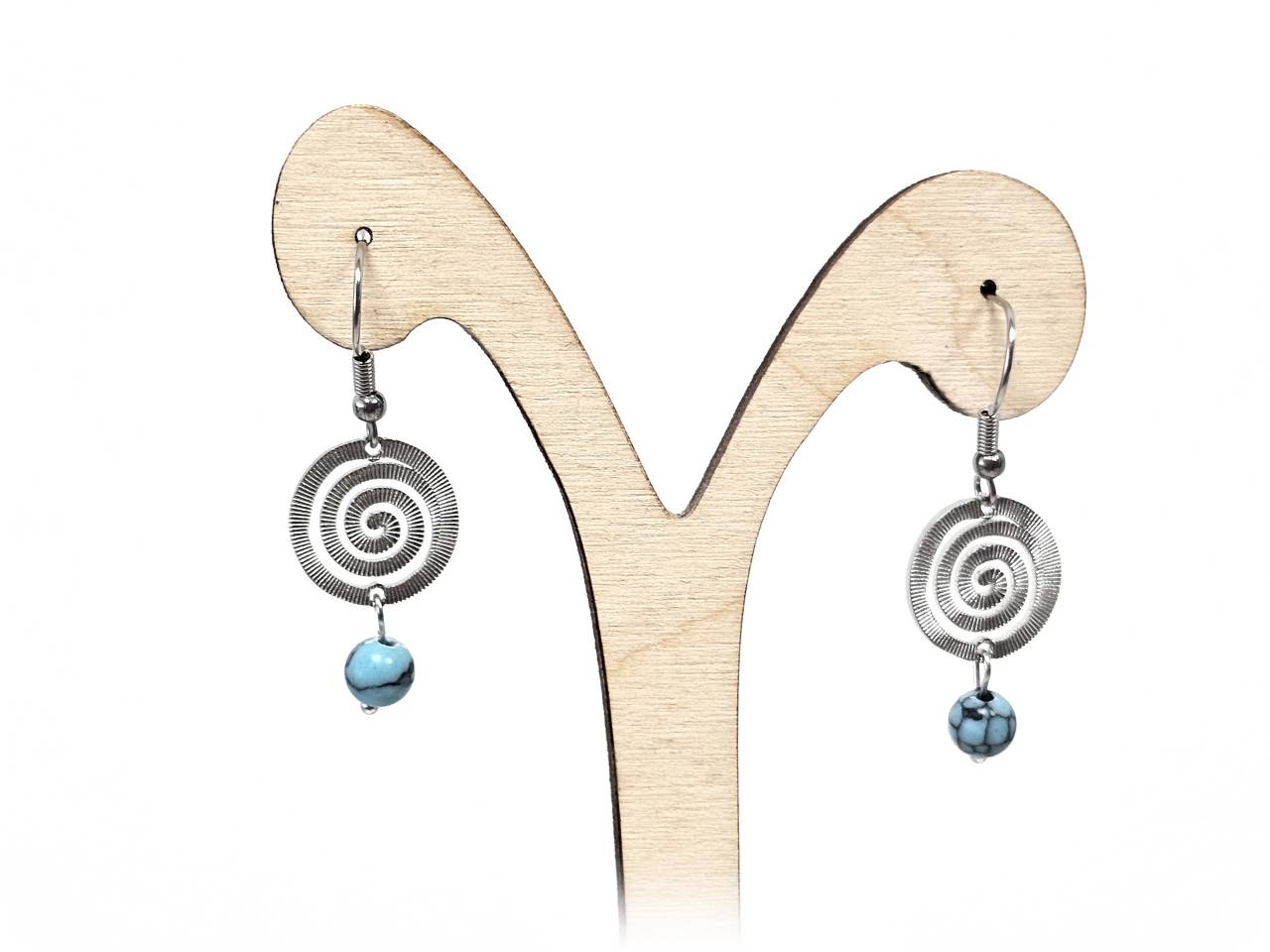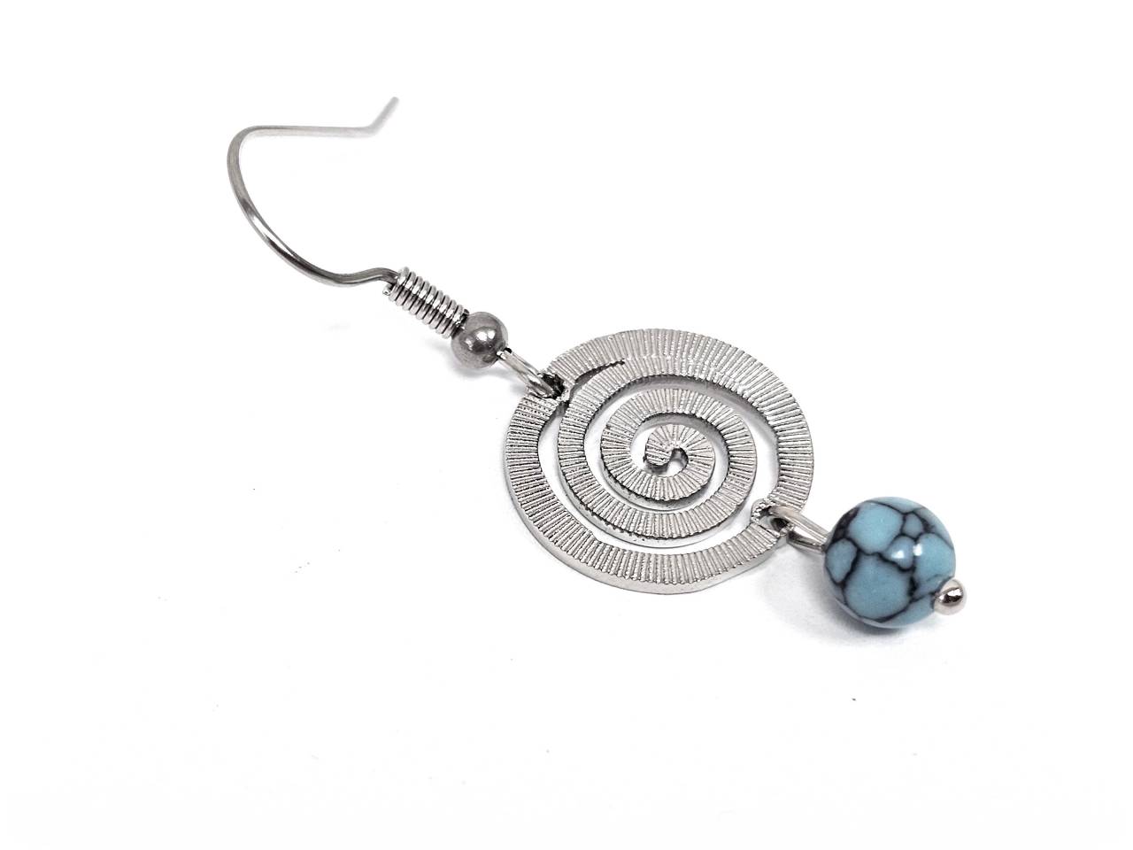 Σκουλαρίκια Πέτρα Ατσάλι 316L, σπείρα με τυρκουάζ σε χρώμα Ασημί