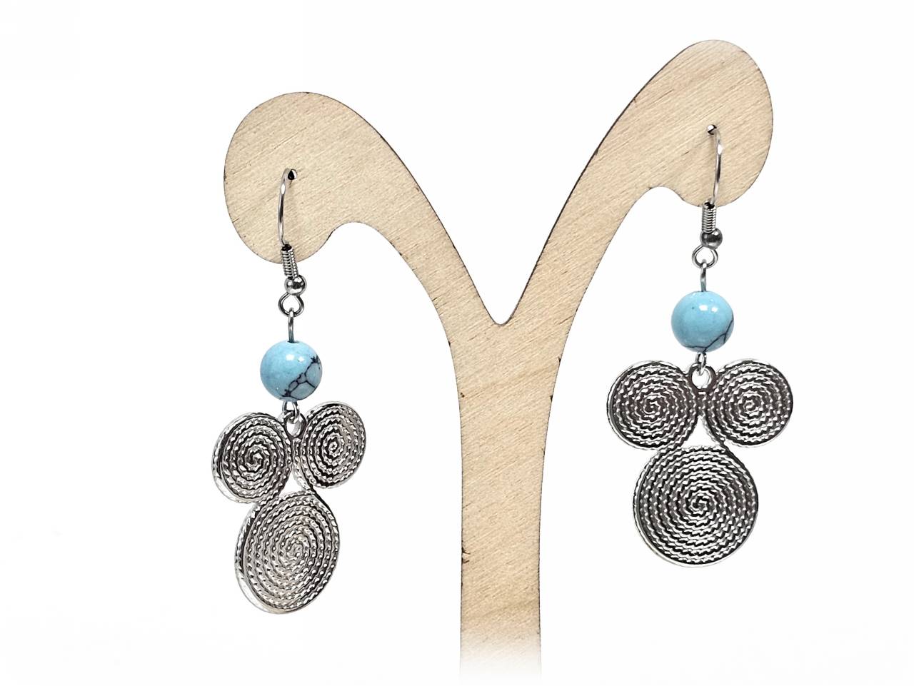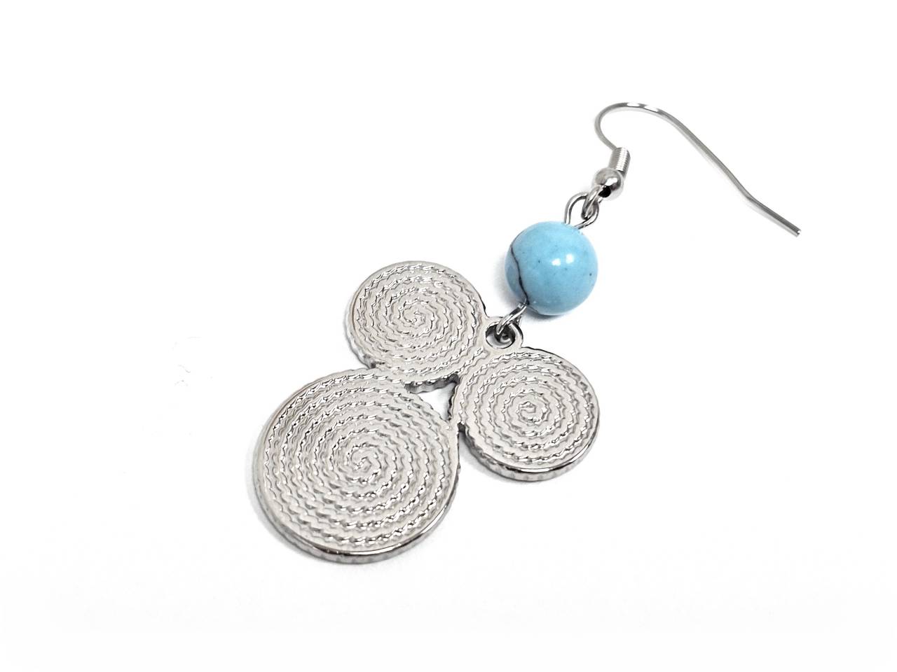 Σκουλαρίκια Πέτρα Ατσάλι 316L, σπέιρα με τυρκουάζ σε χρώμα Ασημί
