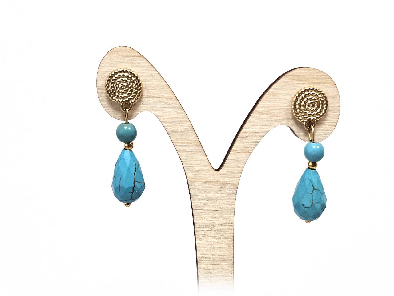 Σκουλαρίκια Πέτρα Ατσάλι 316L, σπείρα με τυρκουάζ σε χρώμα Χρυσαφί