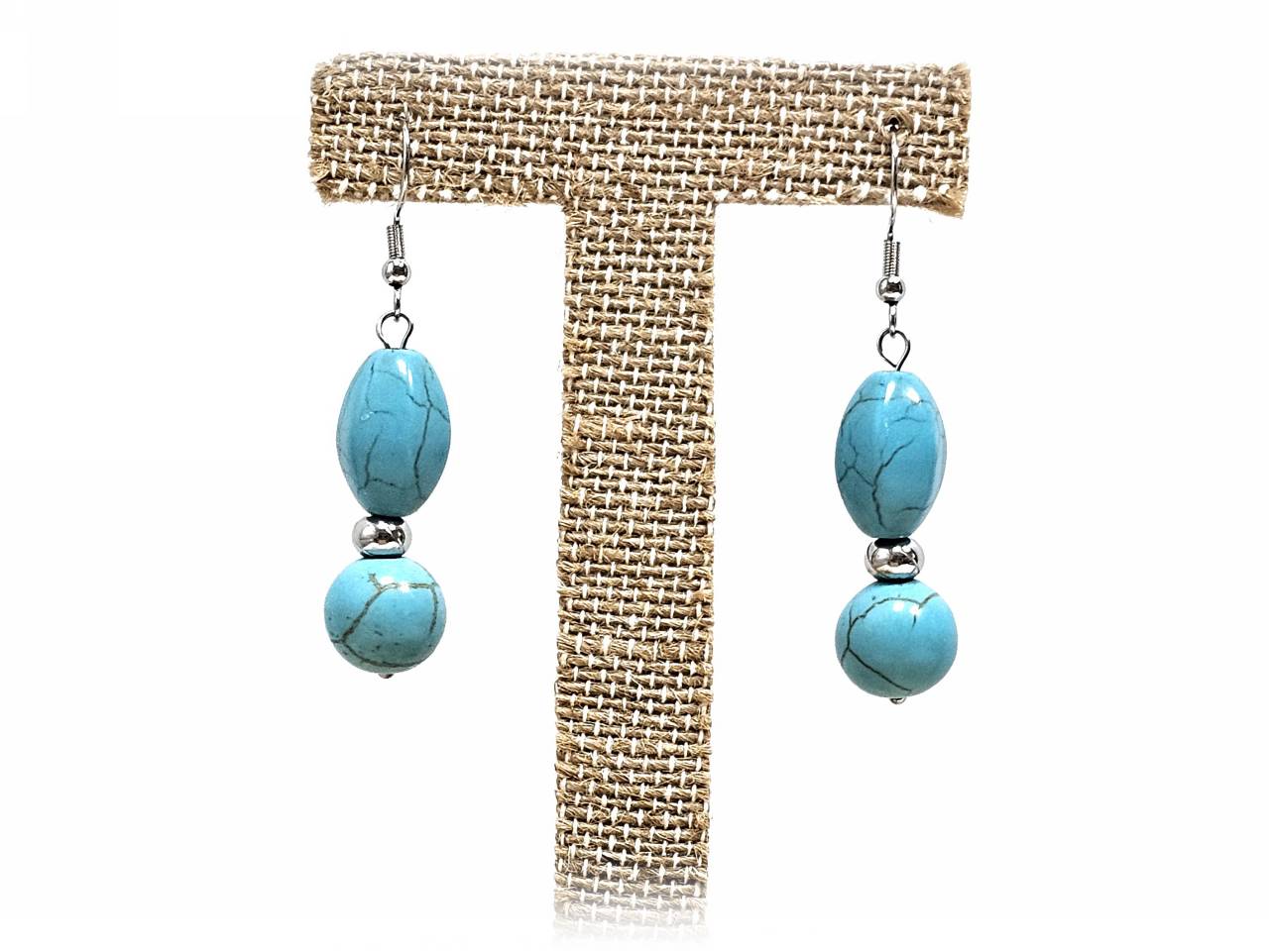 Σκουλαρίκια Πέτρα τυρκουάζ, ατσάλι σε χρώμα Ασημί
