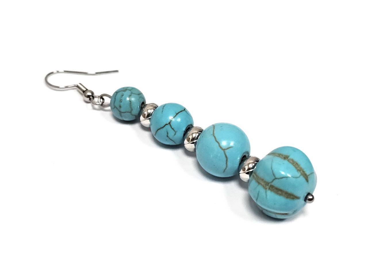 Σκουλαρίκια Πέτρα τυρκουάζ, ατσάλι σε χρώμα Ασημί
