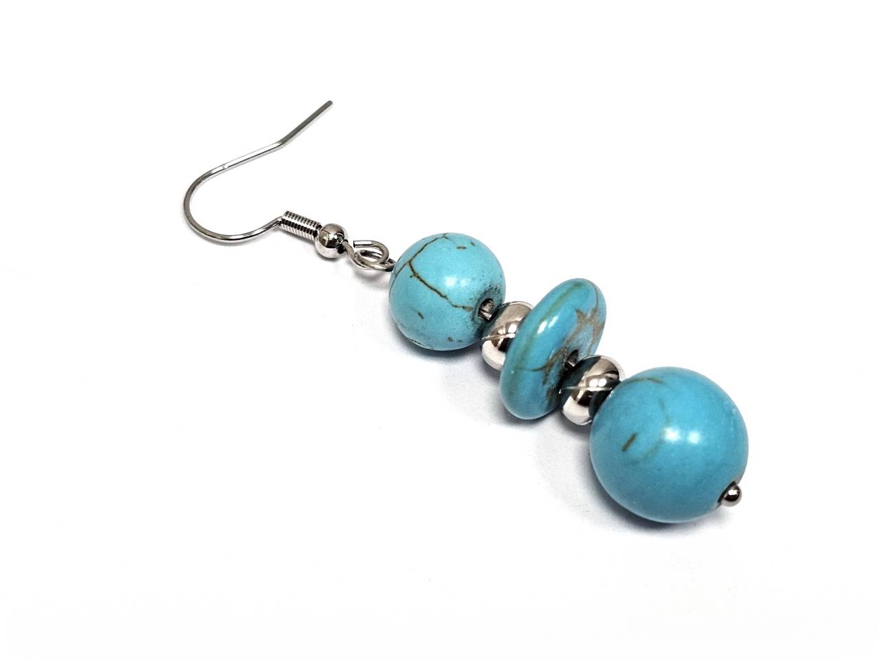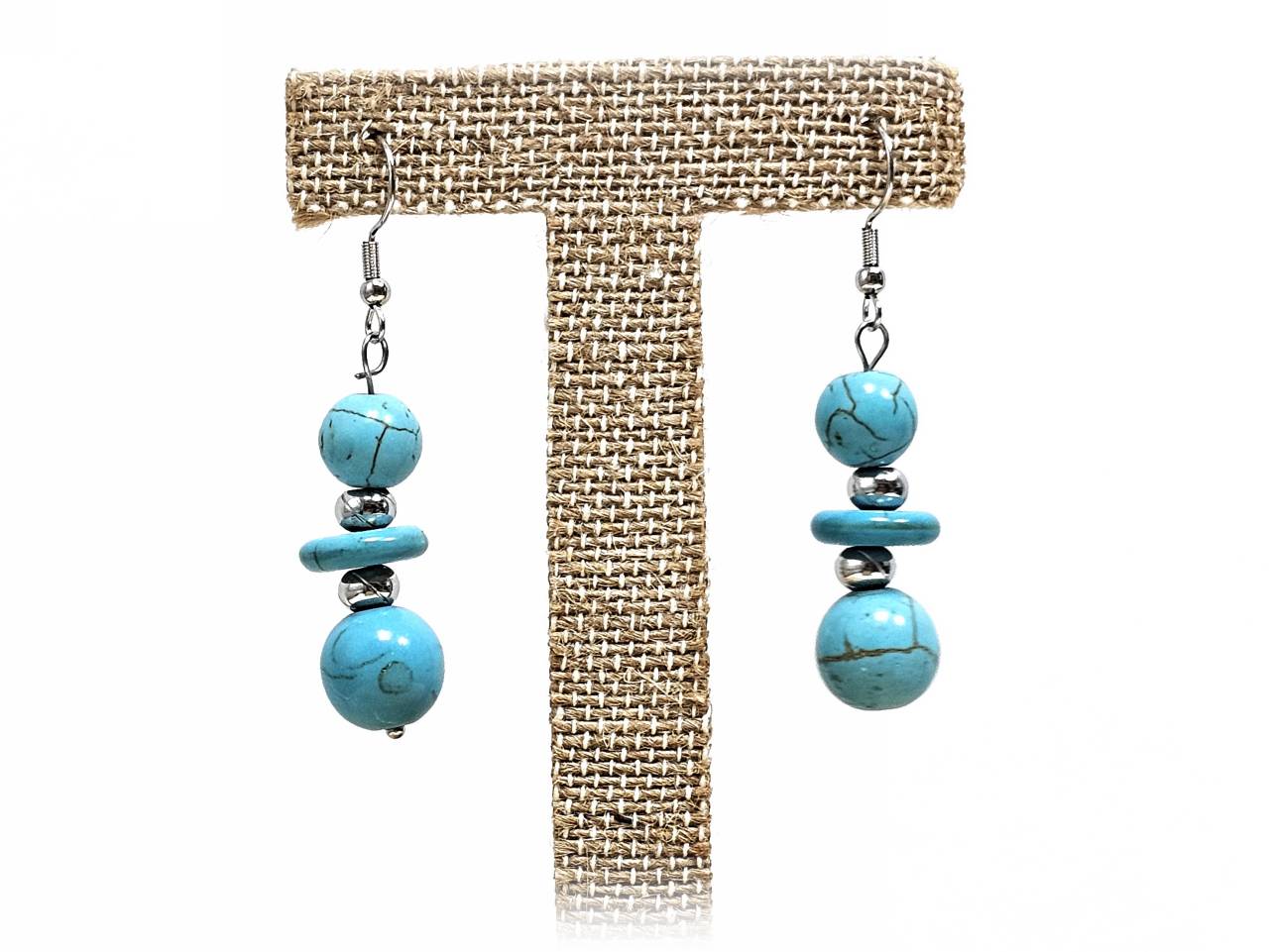 Σκουλαρίκια Πέτρα τυρκουάζ, ατσάλι σε χρώμα Ασημί
