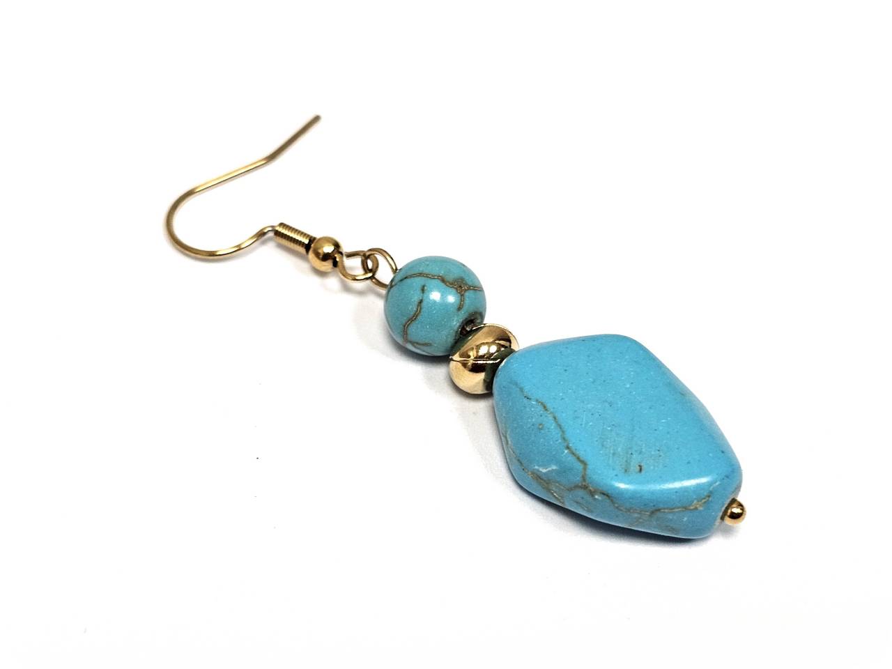Σκουλαρίκια Πέτρα τυρκουάζ, ατσάλι σε χρώμα Χρυσαφί