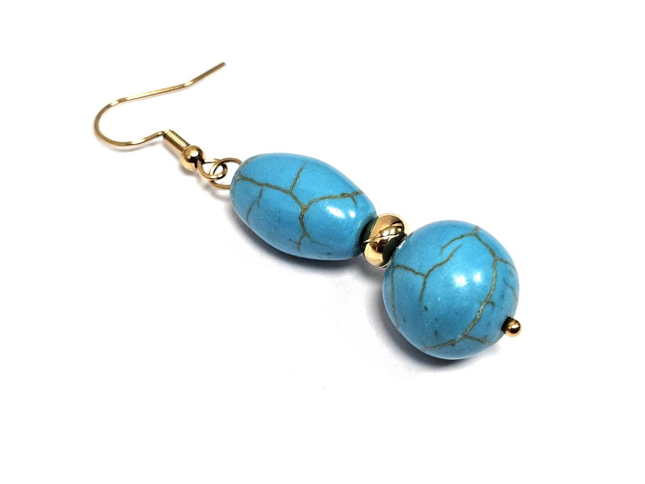 Σκουλαρίκια Πέτρα τυρκουάζ, ατσάλι σε χρώμα Χρυσαφί