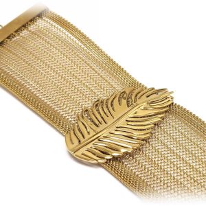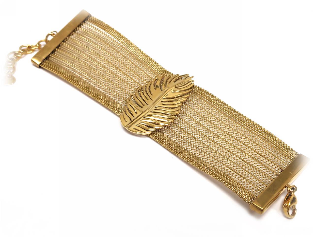 Βραχιόλι Ατσάλι 316L, αλυσίδα με φύλλο σε χρώμα Χρυσαφί