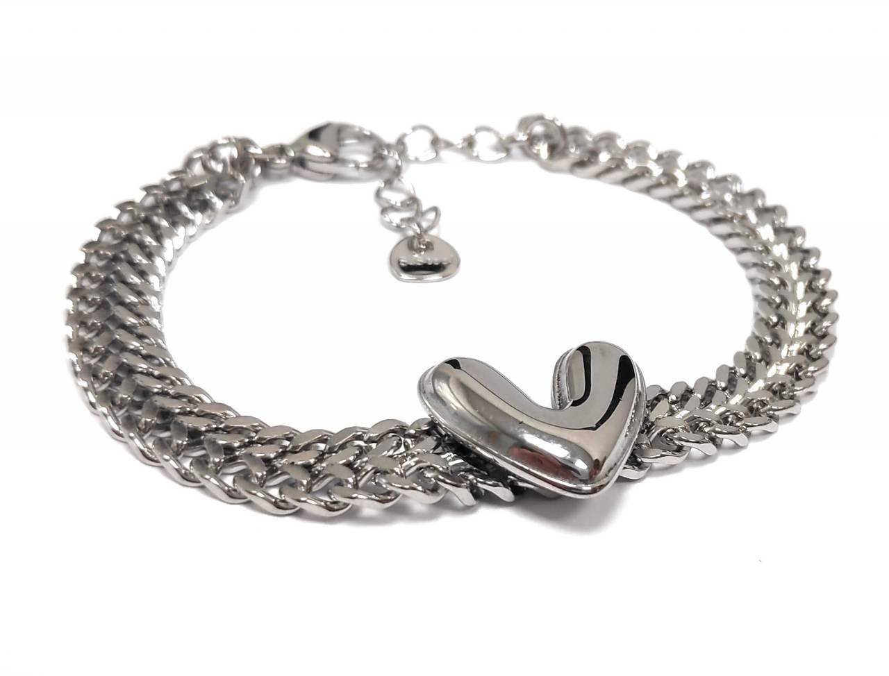 Βραχιόλι Ατσάλι 316L, αλυσίδα με καρδιά σε χρώμα Ασημί