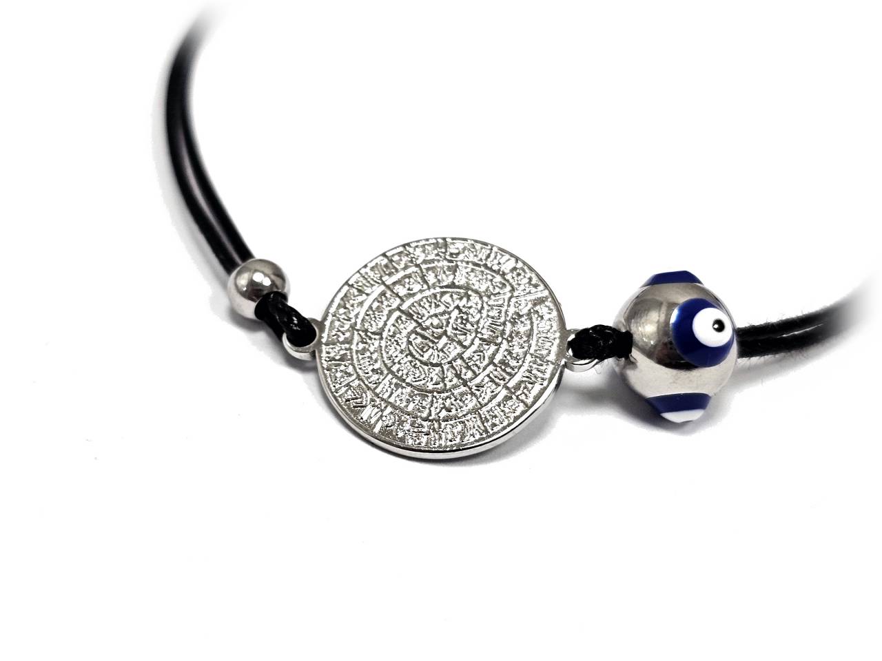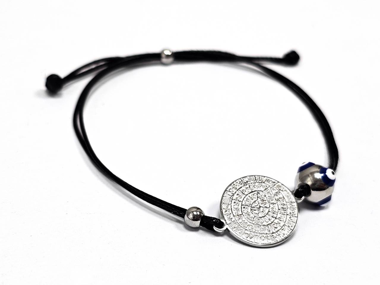 Βραχιόλι Ατσάλι 316L, κορδόνι με μάτι και δίσκο φαιστού σε χρώμα Ασημί