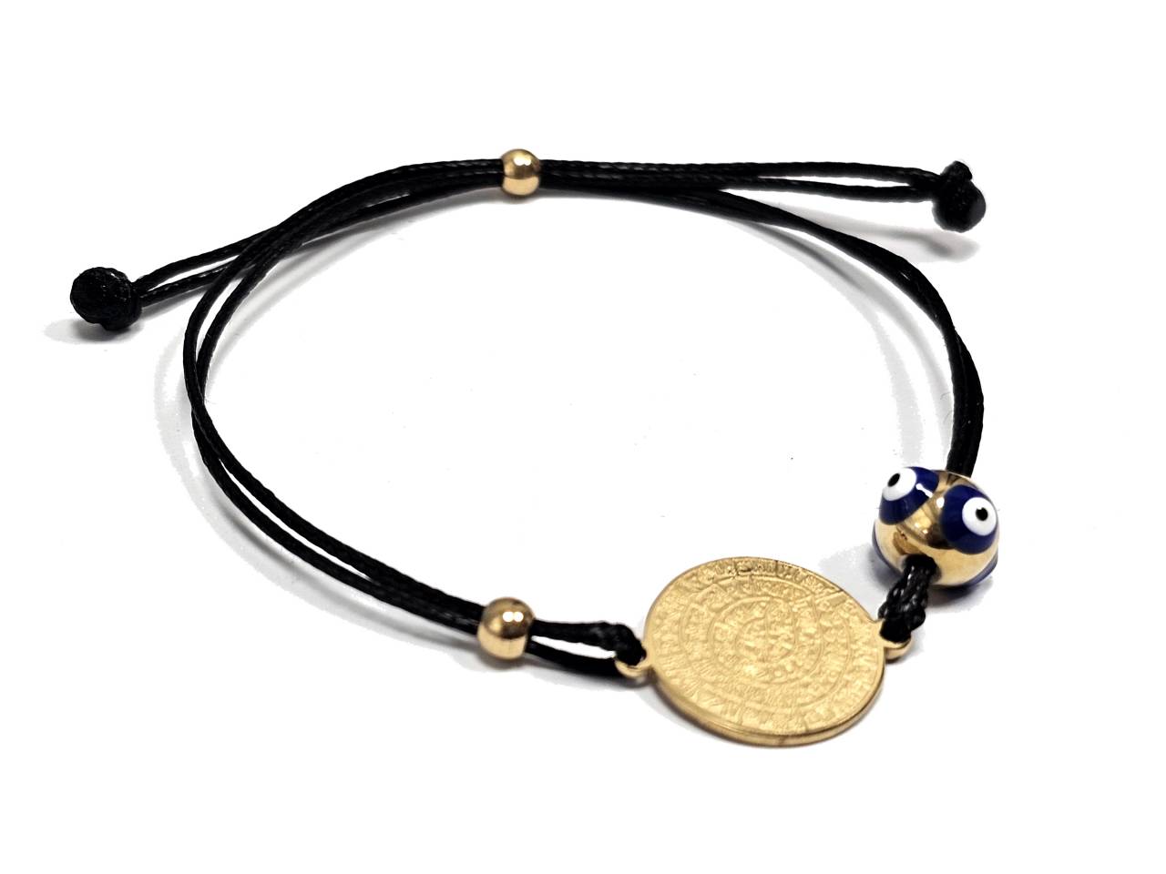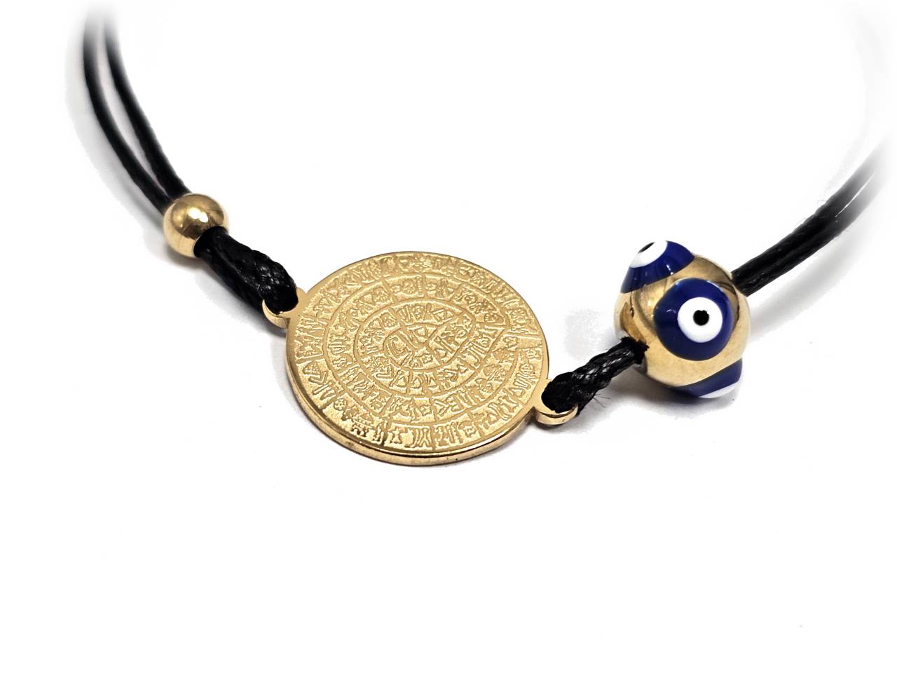 Βραχιόλι Ατσάλι 316L, κορδόνι με μάτι και δίσκο φαιστού σε χρώμα Χρυσαφί