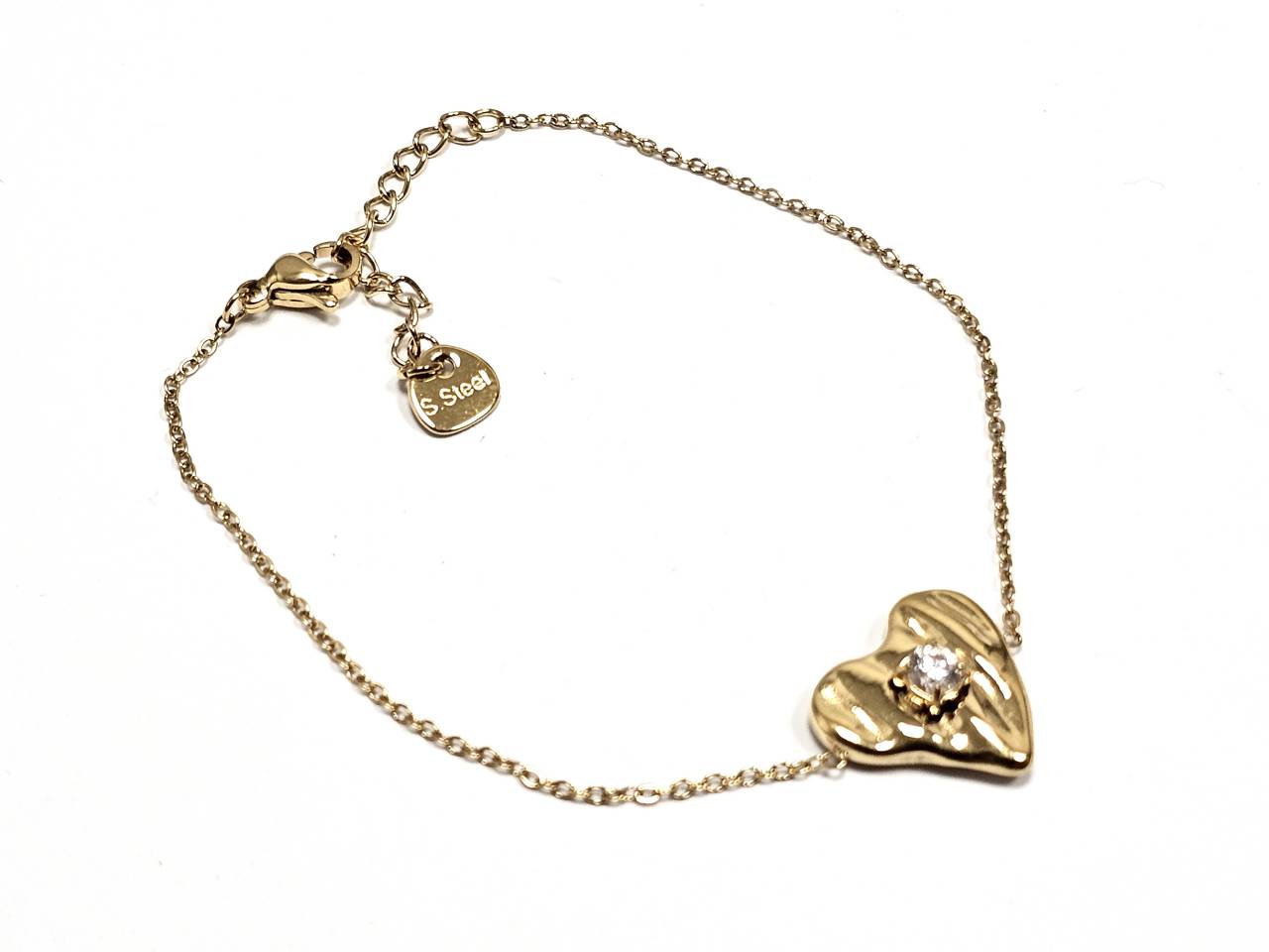 Βραχιόλι Ατσάλι 316L, αλυδίδα καρδιά με στρας σε χρώμα Χρυσαφί