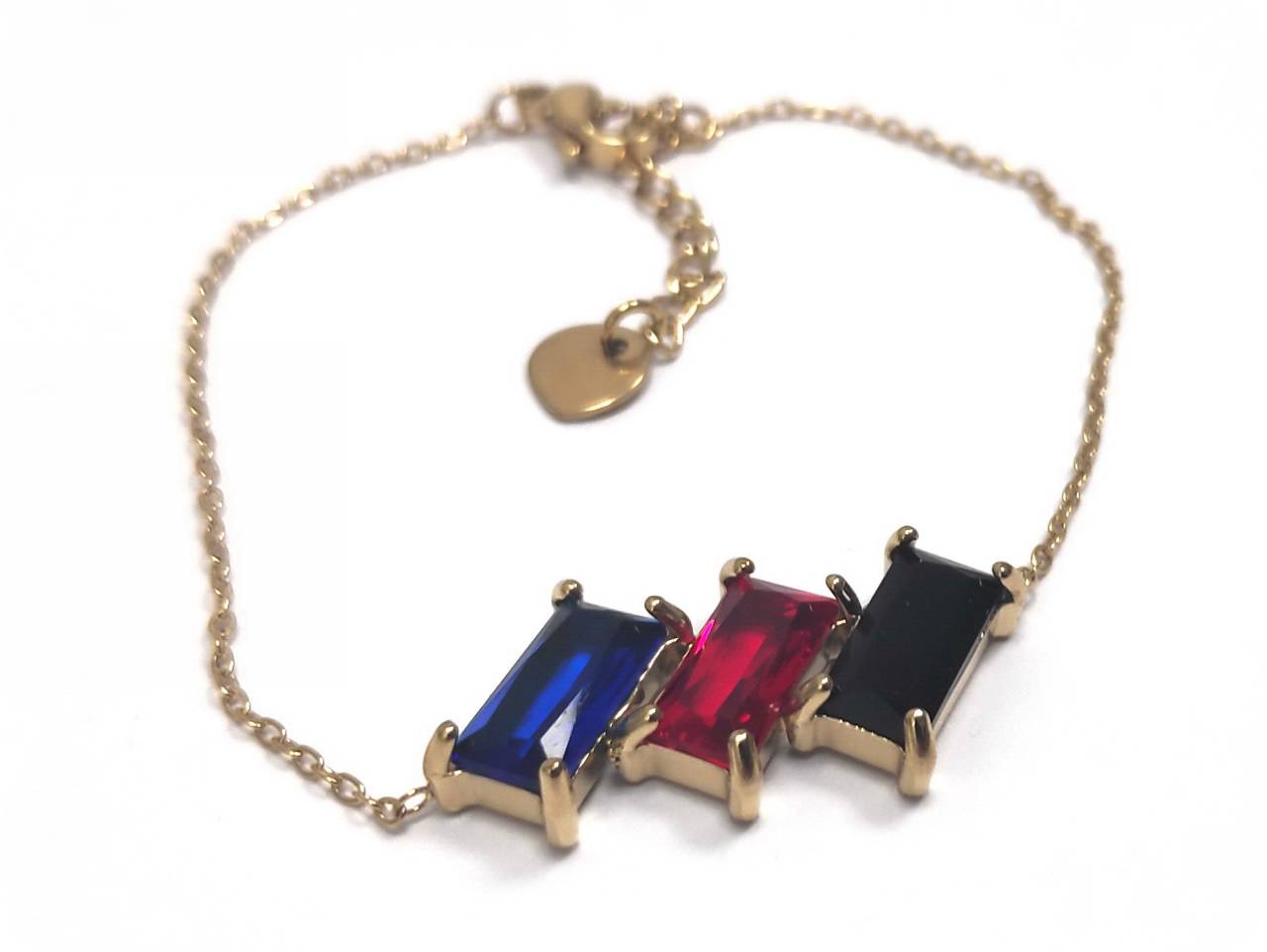 Βραχιόλι Ατσάλι 316L, με πολύχρωμα κρυσταλλάκια σε χρώμα Χρυσαφί