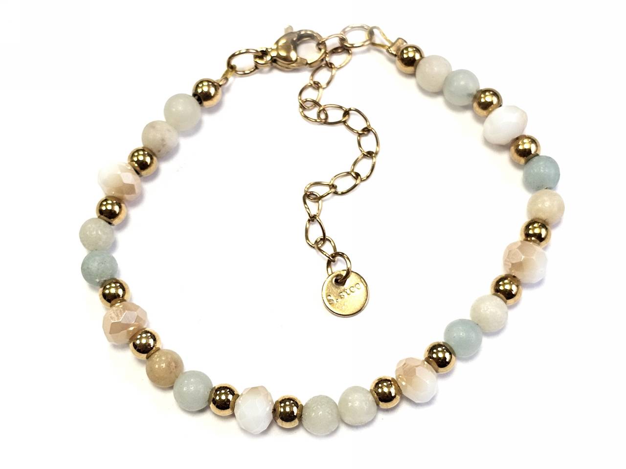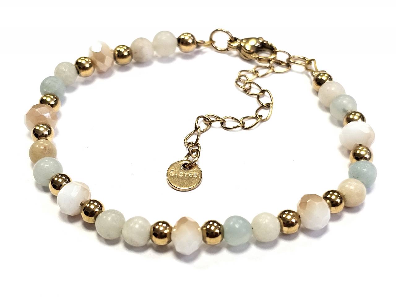 Βραχιόλι Ατσάλι αλυσίδα με 4# διάφορες πέτρες, κρυσταλλάκι με στοιχεία αιματίτη σε χρώμα Χρυσαφί