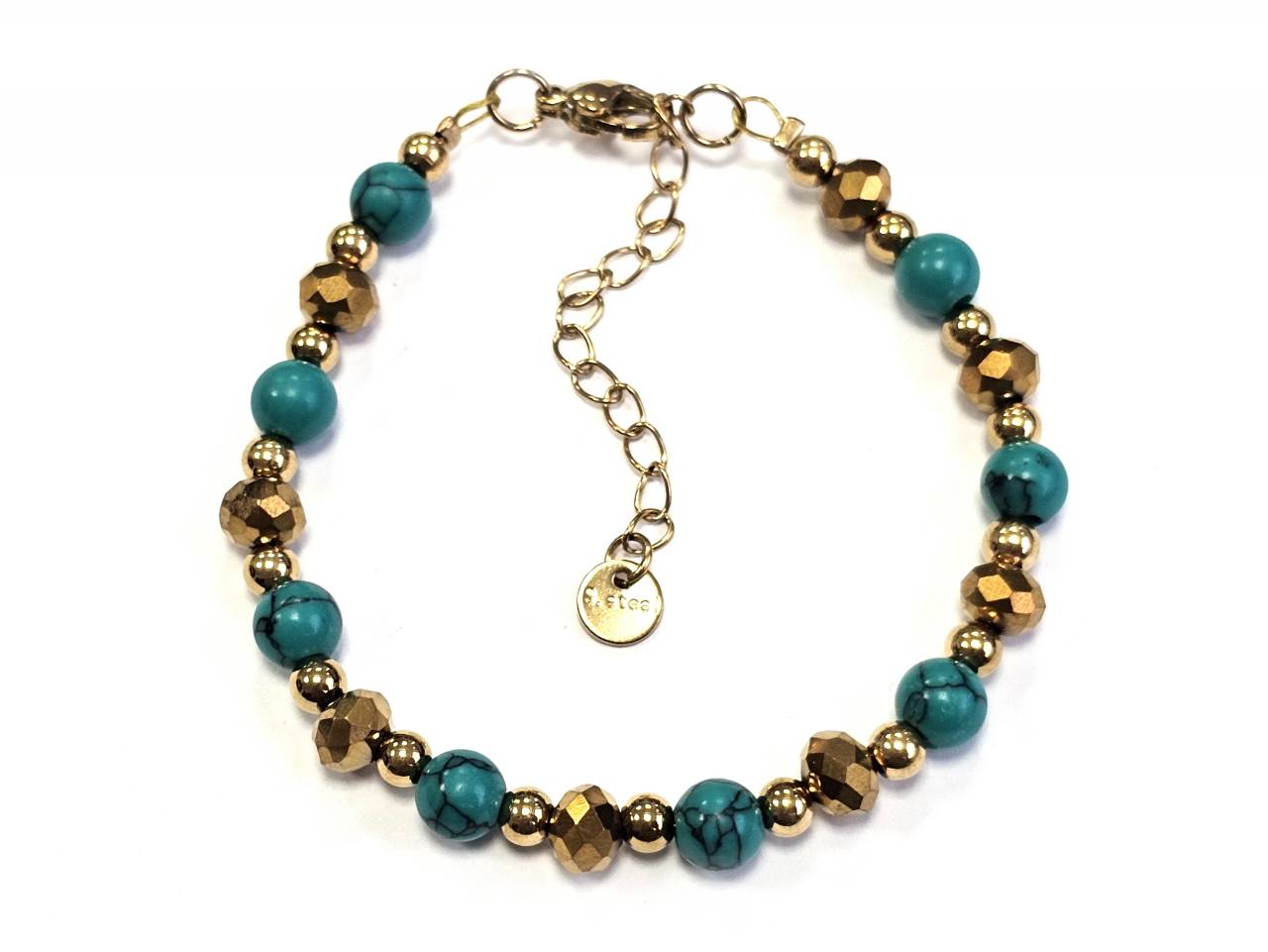 Βραχιόλι Ατσάλι αλυσίδα με 6# τυρκουάζ, κρυσταλλάκι με στοιχεία αιματίτη σε χρώμα Χρυσαφί