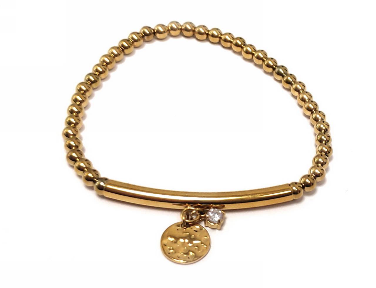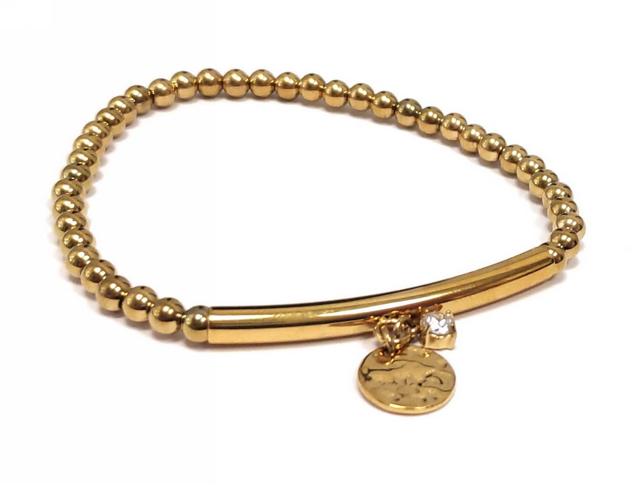 Βραχιόλι Ατσάλι 316L, με λάστιχο και στρας σε χρώμα Χρυσαφί