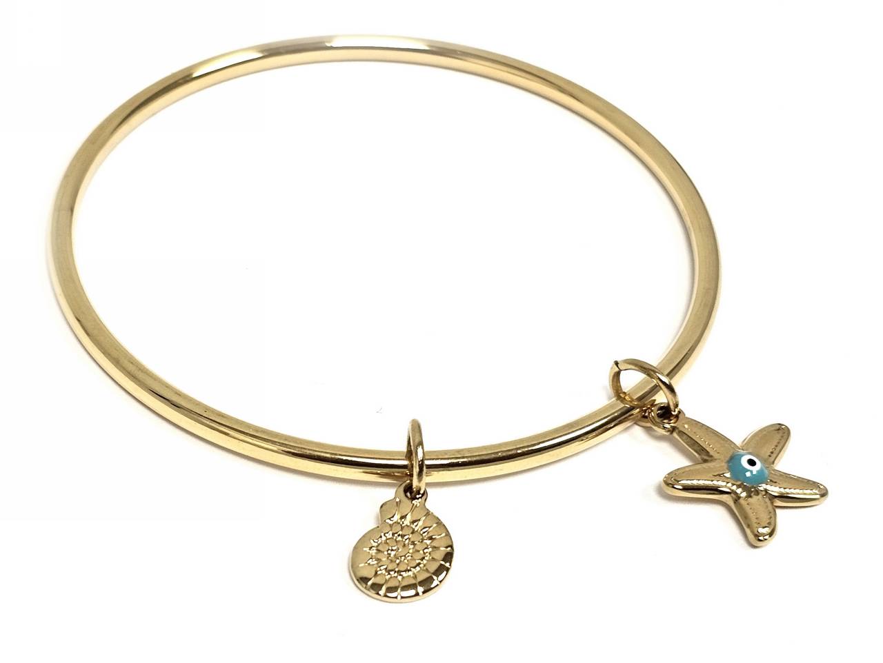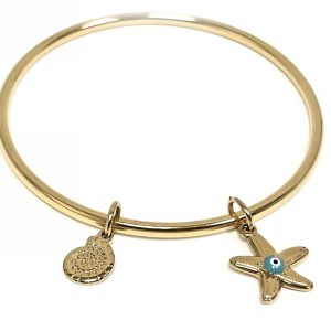 Βραχιόλι Ατσάλι 316L, με αστερία , μάτι και κοχύλι σε χρώμα Χρυσαφί
