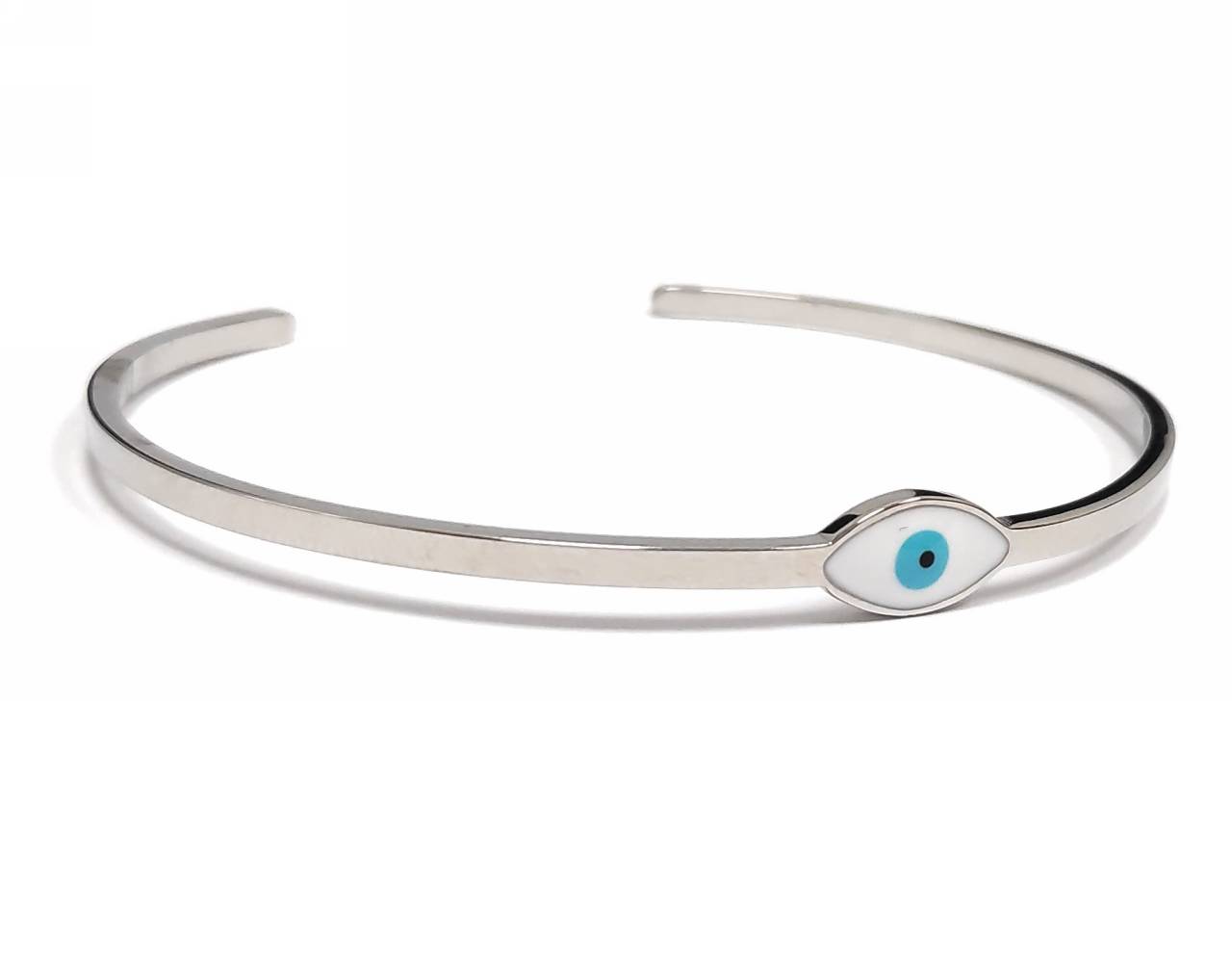 Βραχιόλι Ατσάλι 316L, σταθερό με μάτι σε χρώμα Ασημί