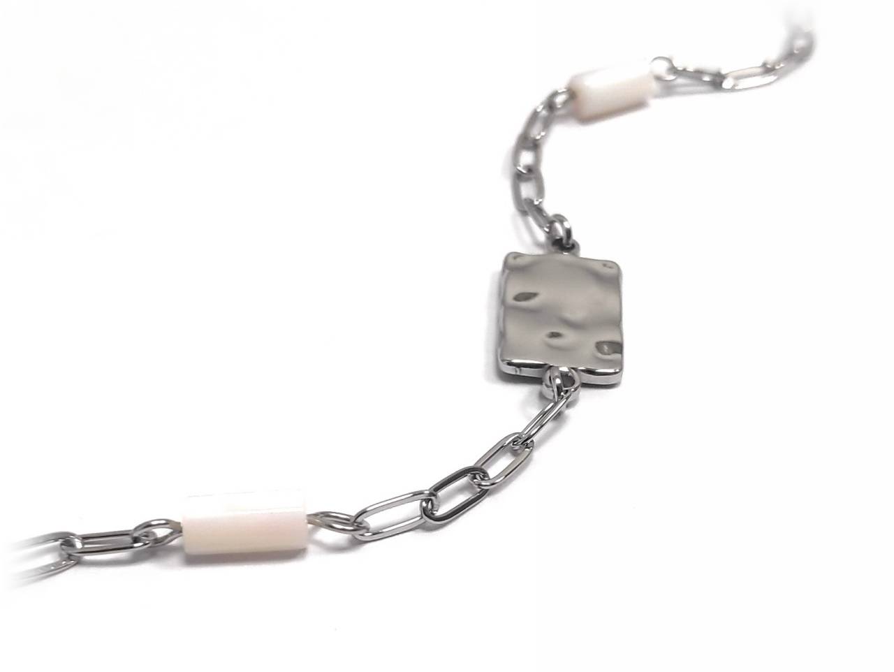 Βραχιόλι Ατσάλι 316L, αλυσίδα με μαργαριτάρι σε χρώμα Ασημί