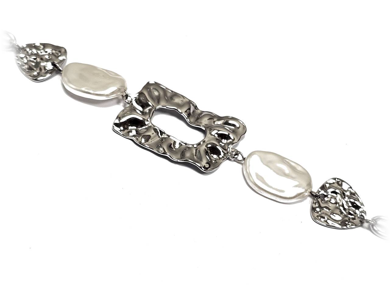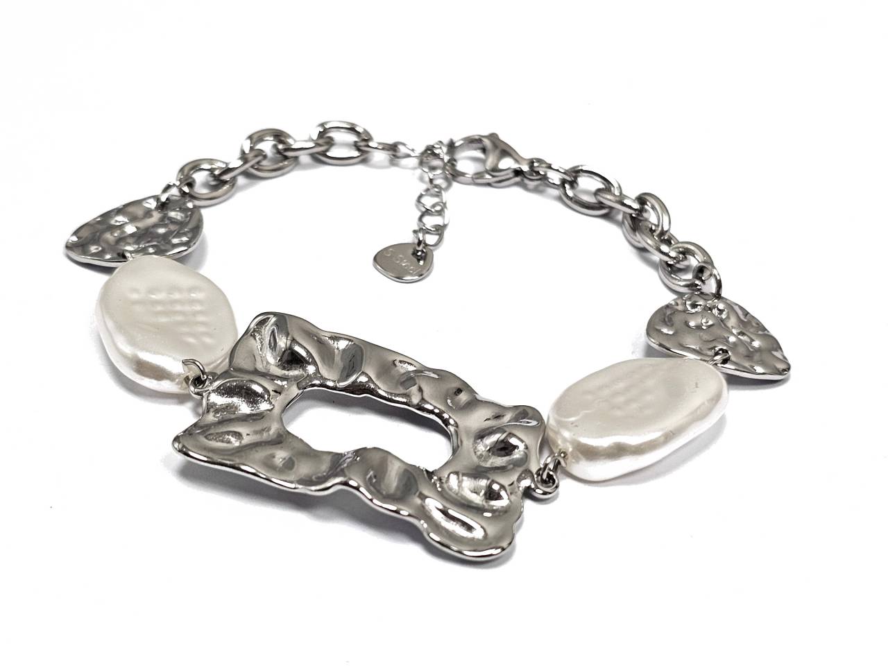 Βραχιόλι Ατσάλι 316L, αλυσίδα με μαργαριτάρι σε χρώμα Ασημί