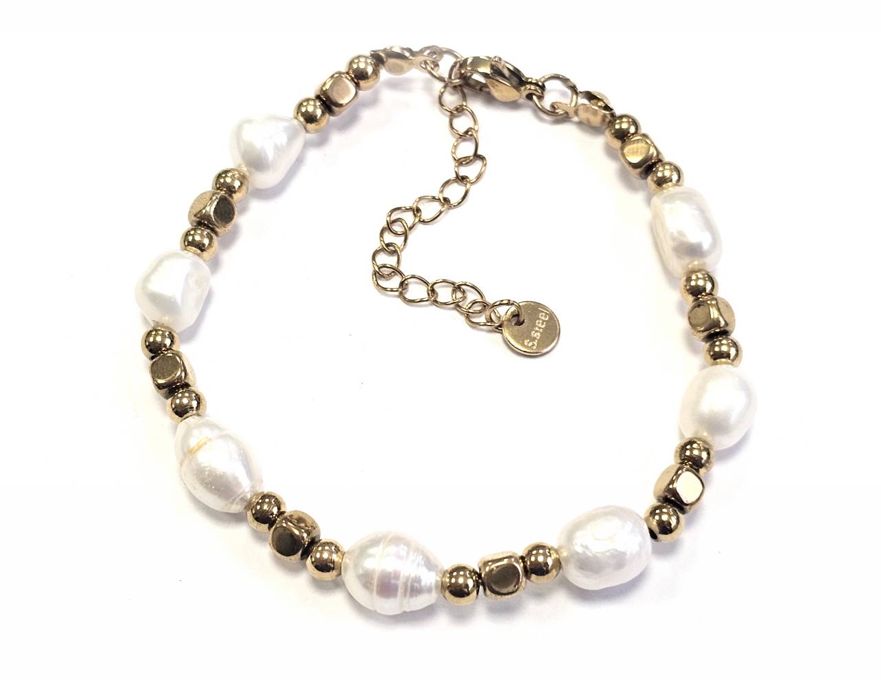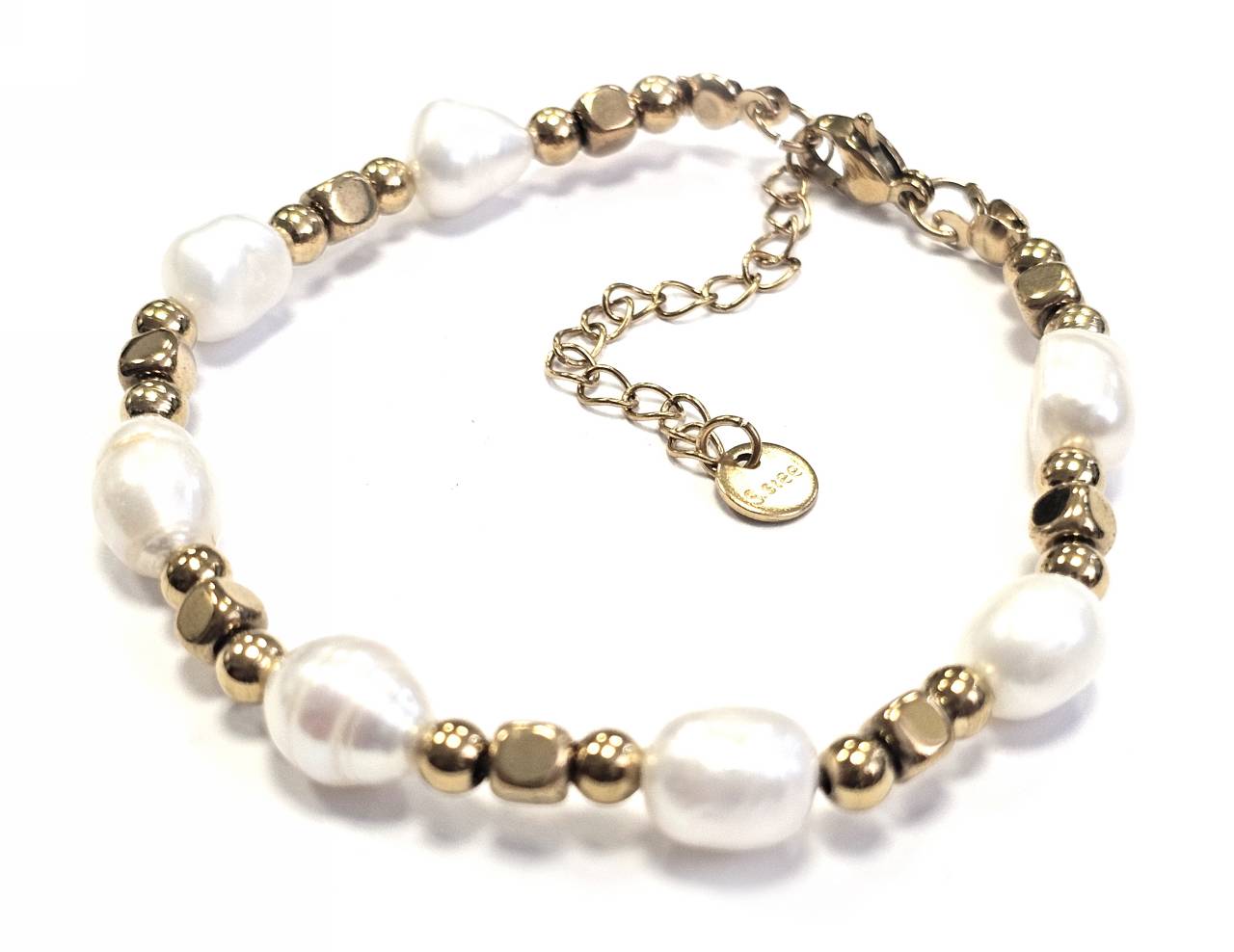 Βραχιόλι Ατσάλι 316L, αλυσίδα με μαργαριτάρι σε χρώμα Χρυσαφί