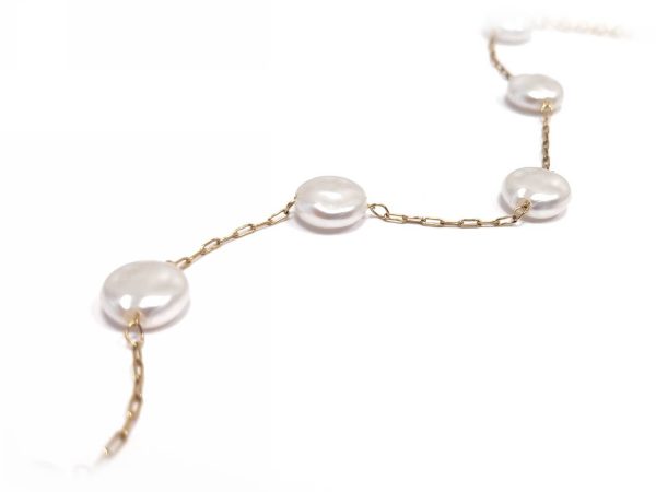 Βραχιόλι Ατσάλι 316L, αλυσίδα με μαργαριτάρι σε χρώμα Χρυσαφί