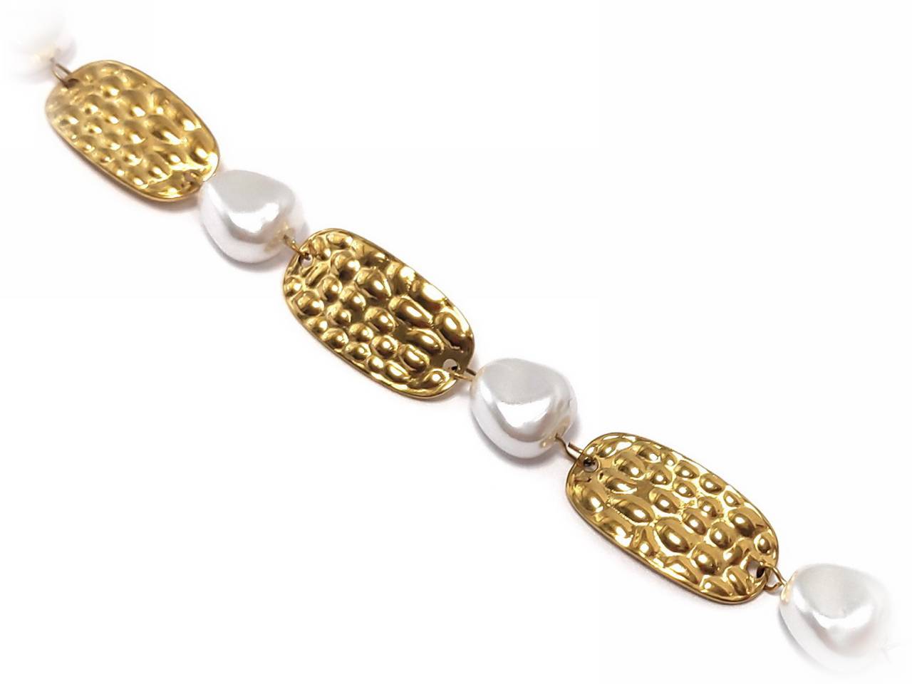 Βραχιόλι Ατσάλι 316L, αλυσίδα με μαργαριτάρι σε χρώμα Χρυσαφί