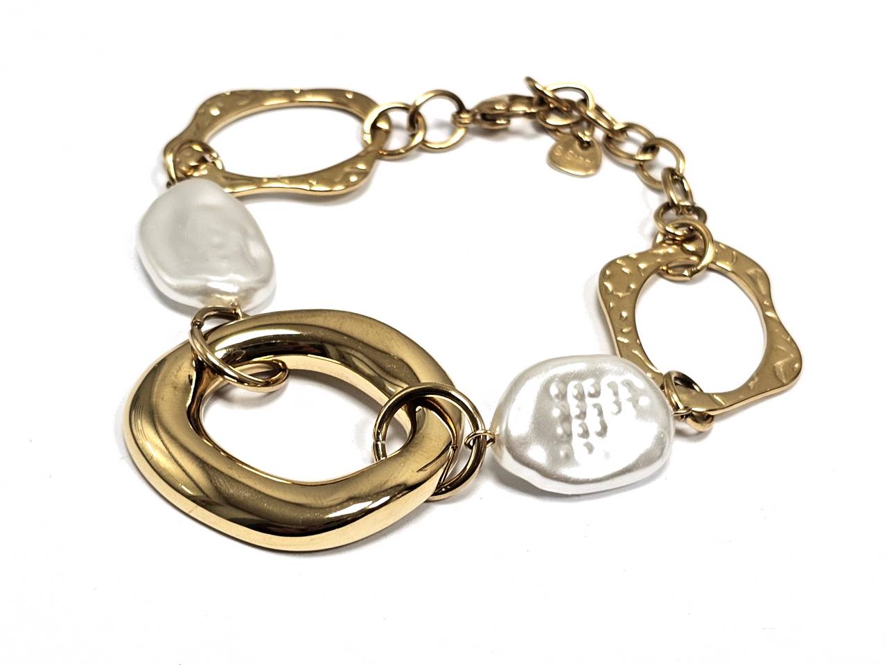 Βραχιόλι Ατσάλι 316L, αλυσίδα με μαργαριτάρι σε χρώμα Χρυσαφί