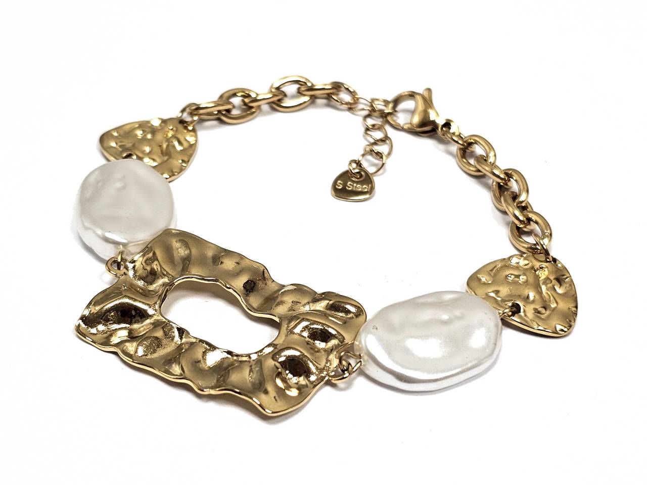 Βραχιόλι Ατσάλι 316L, αλυσίδα με μαργαριτάρι σε χρώμα Χρυσαφί