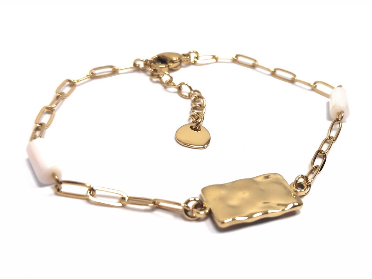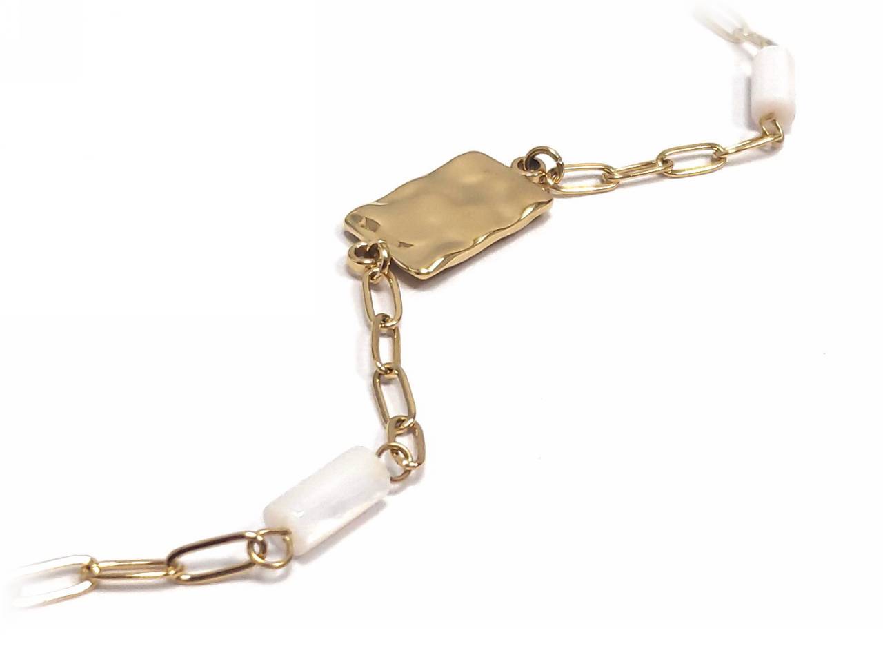 Βραχιόλι Ατσάλι 316L, αλυσίδα με μαργαριτάρι σε χρώμα Χρυσαφί