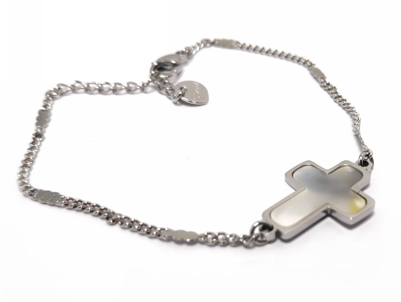 Βραχιόλι Ατσάλι 316L, αλυσίδα με σταυρό φίλντισι σε χρώμα Ασημί, Μήκος 18cm