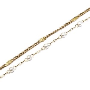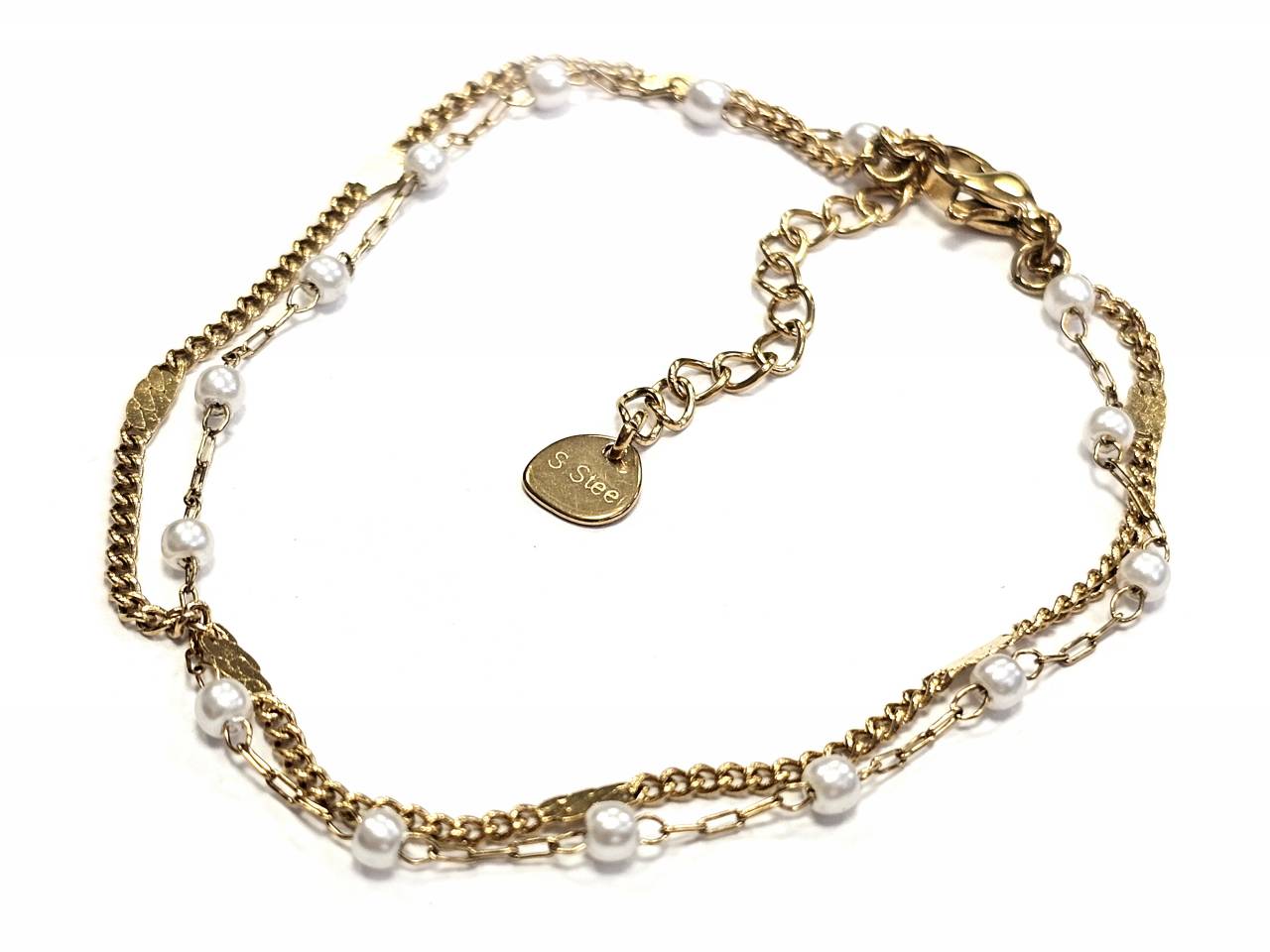 Βραχιόλι Ατσάλι 316L, διπλή αλυσίδα με μαργαριτάρι σε χρώμα Χρυσαφί