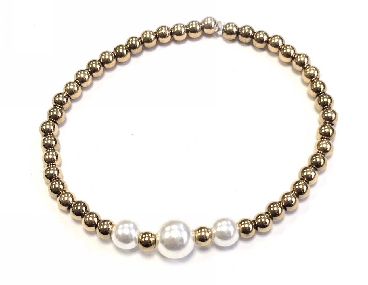 Βραχιόλι Ατσάλι 316L, λάστιχο με πέρλα σε χρώμα Χρυσαφί